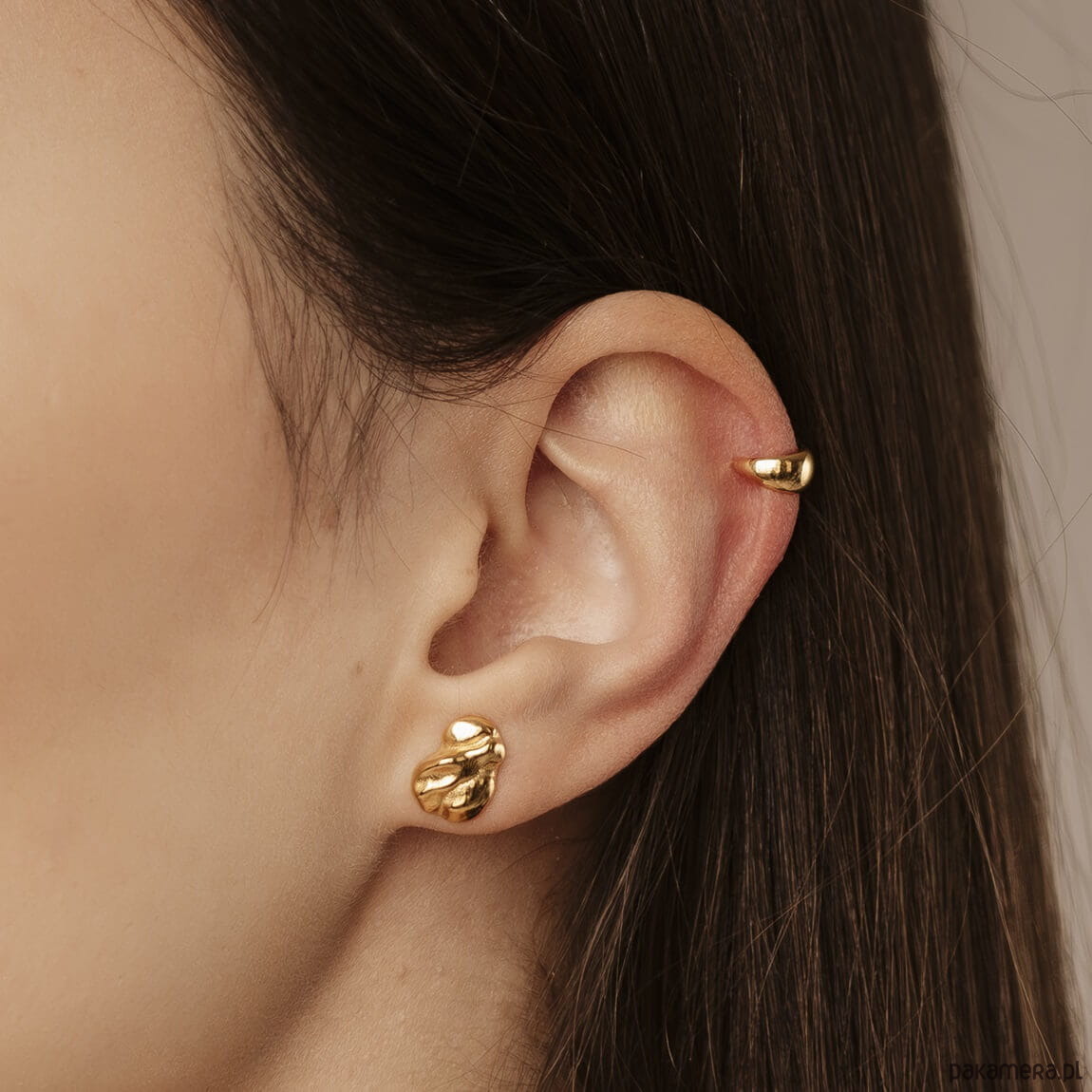 Nausznica PLAIN o gładkiej, prostej powierzchni. W pełni wykonana ze srebra próby 925, pozłacanego 24 karatowym, żółtym złotem.