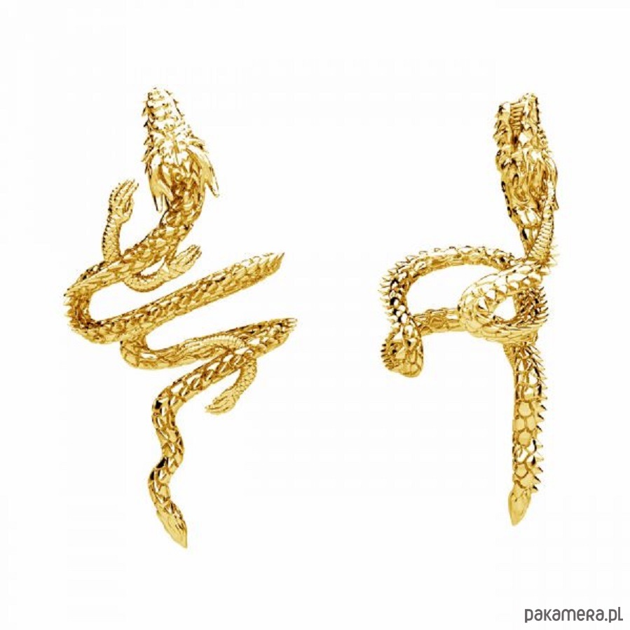 Ozdobna nausznica z motywem smoka, srebro próba 925,  srebro pokryte 24 karatowym złotem lub 18 karatowym różowym złotem.