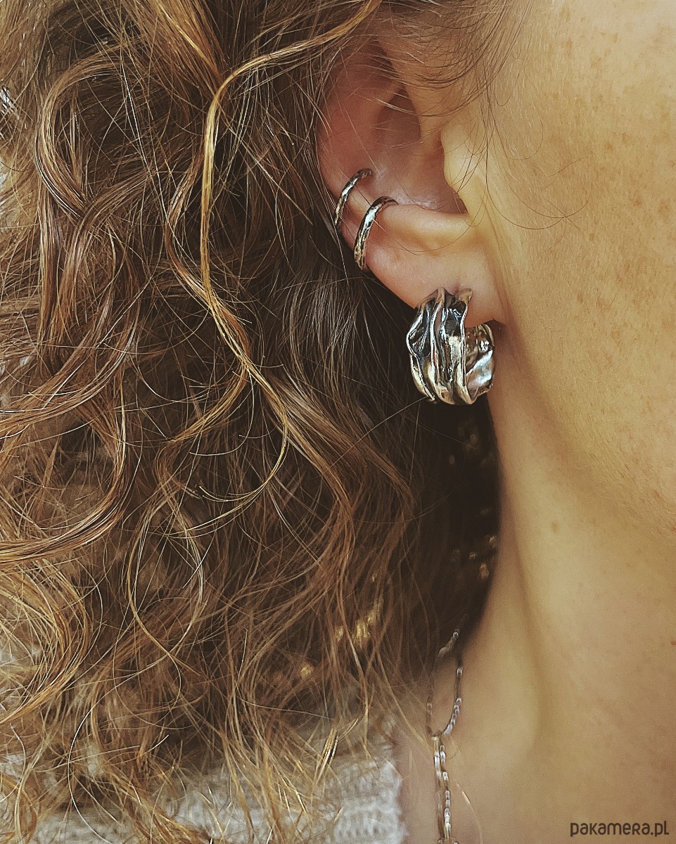 Nausznica ozdobiona organiczna, surową fakturą.