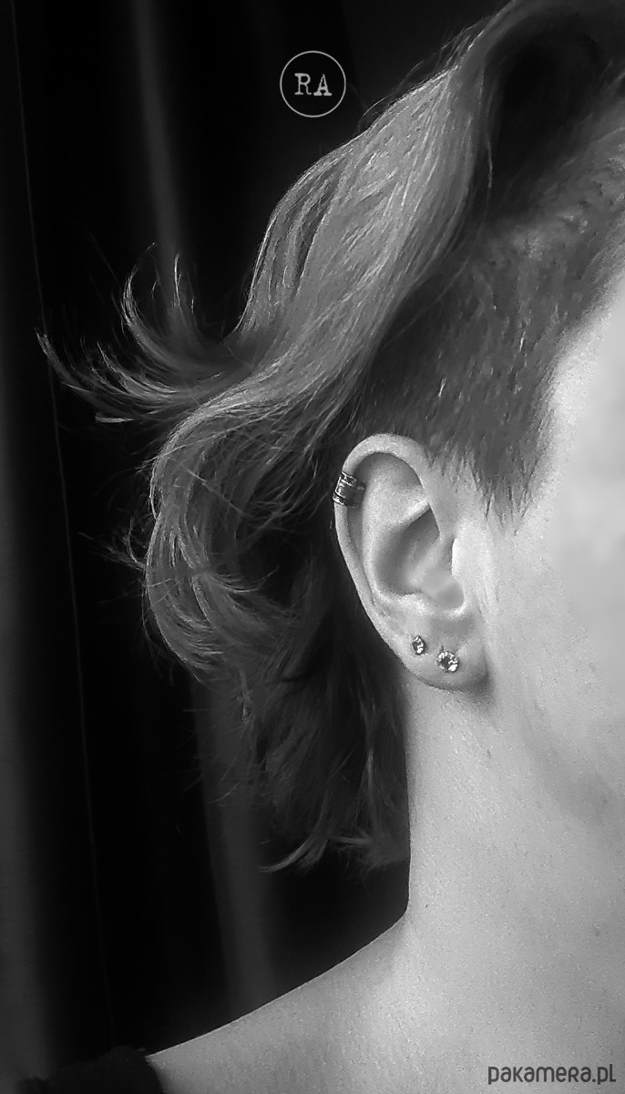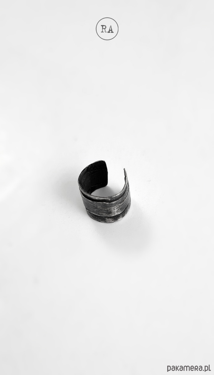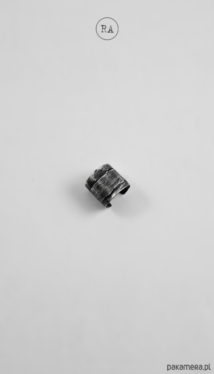 Nausznica na szczyt ucha - szerokość ok. 8 mm. Oksydowane srebro.