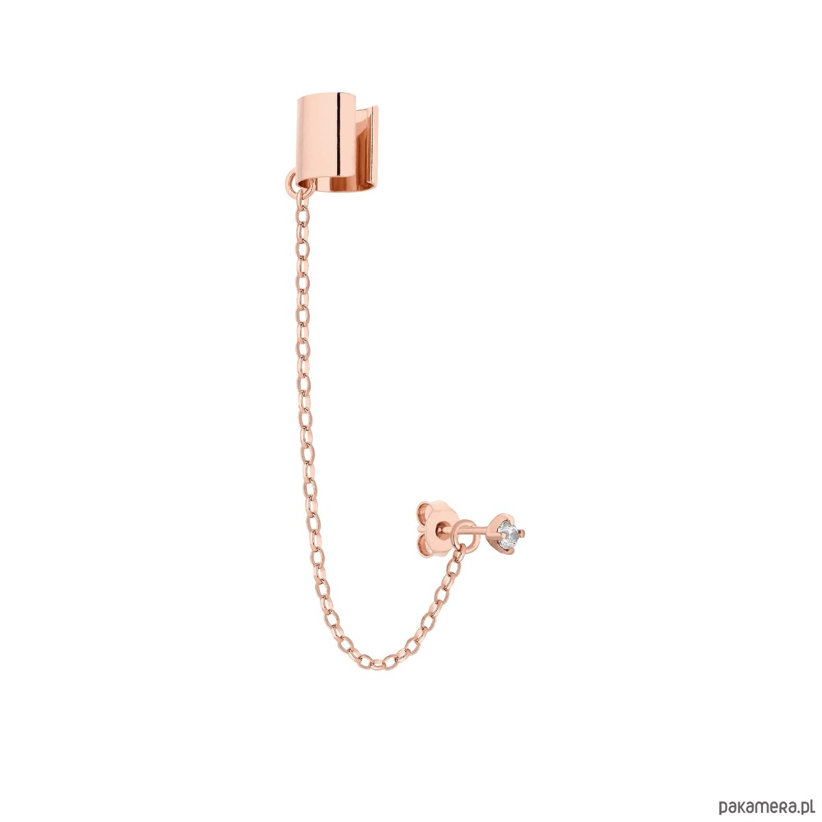 Złota gruba nausznica z łańcuszkiem i kryształkiem SWAROVSKI® CRYSTAL w całości wykonana ze srebra 925 powlekanego 18 karatowym różowym złotem.