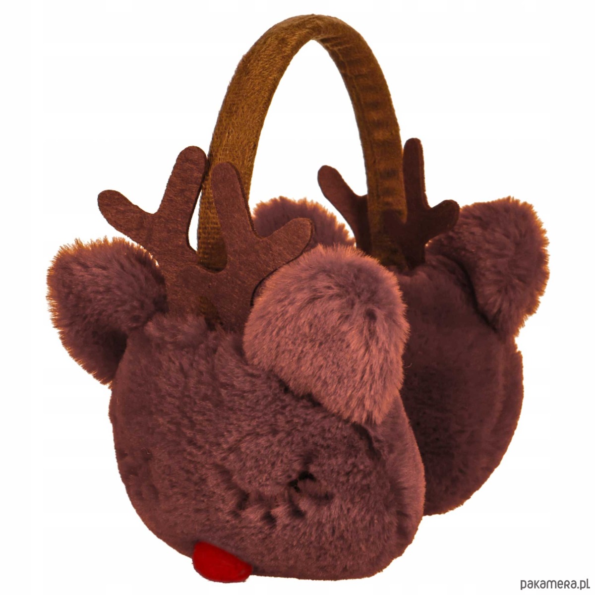 Bardzo przyjemne i wygodne nauszniki futrzane brązowy Renifer z czerwonym nosem. Pokryte przyjemną w dotyku pluszową tkaniną.