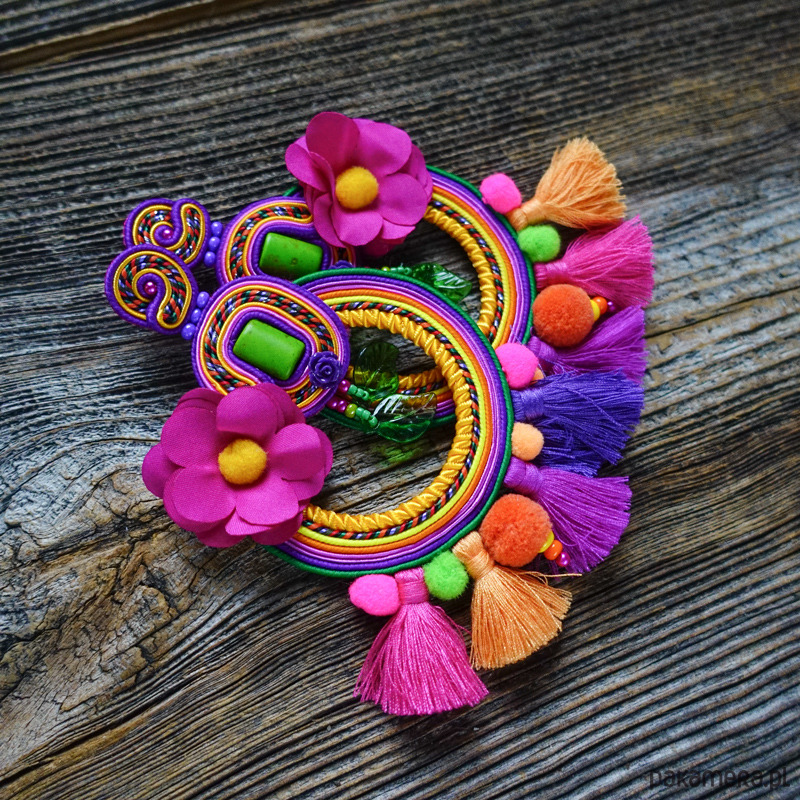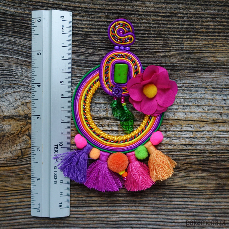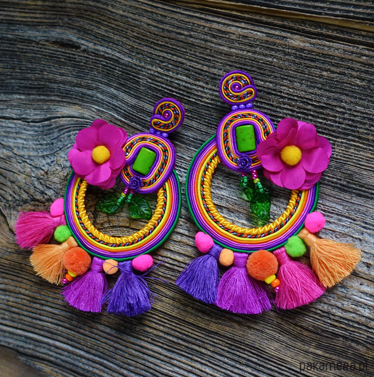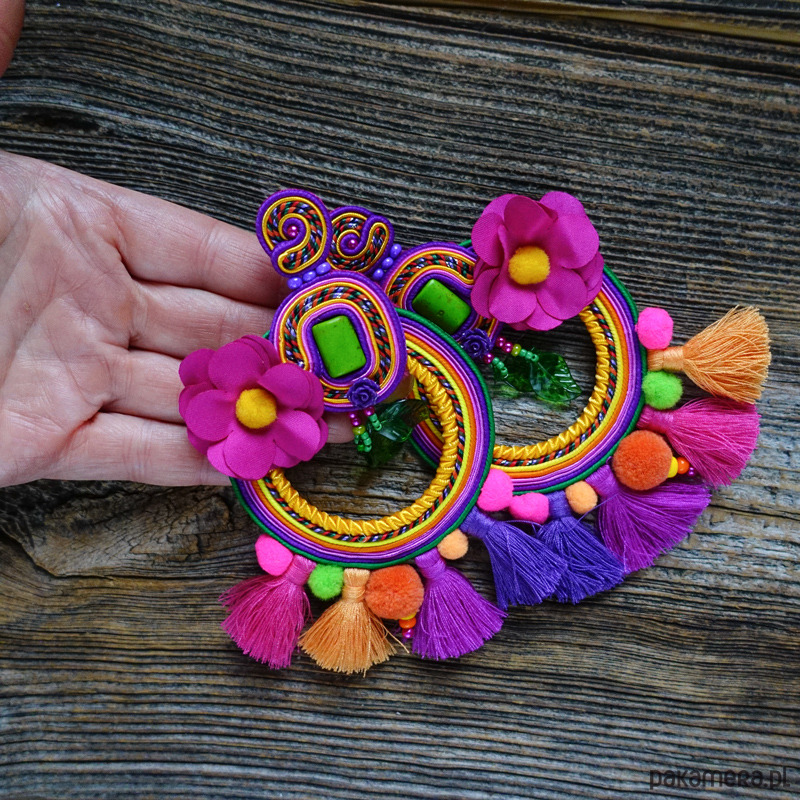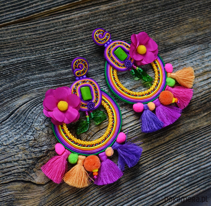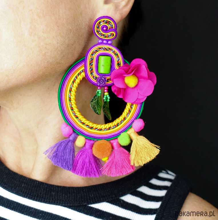 Kolczyki wykonane metodą haftu soutache. Etniczne i spektakularne, trudno przejść obok nich obojętnie .