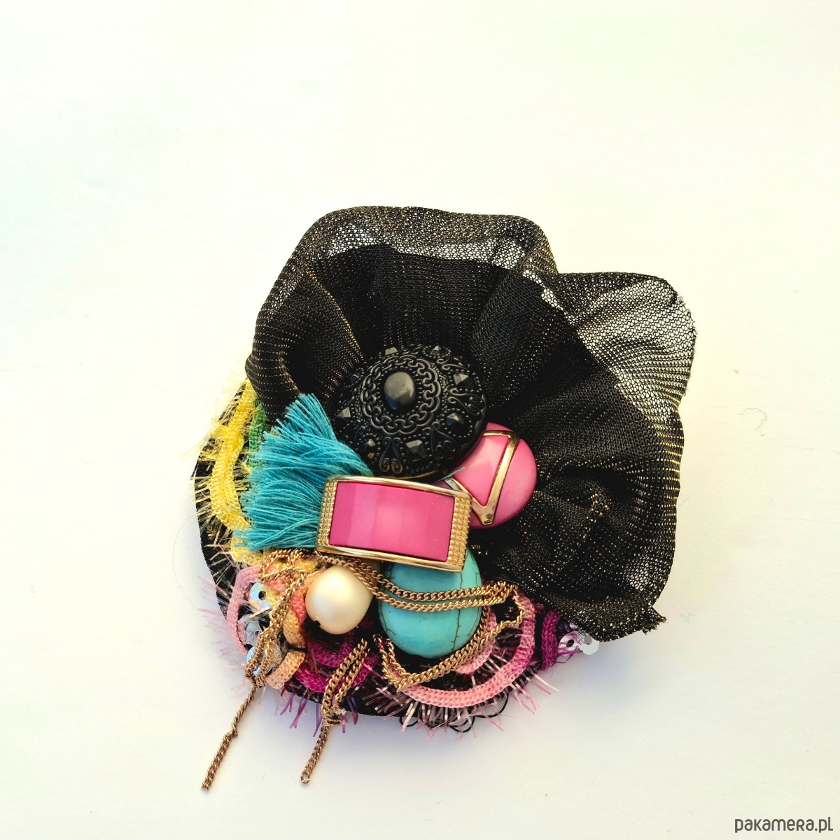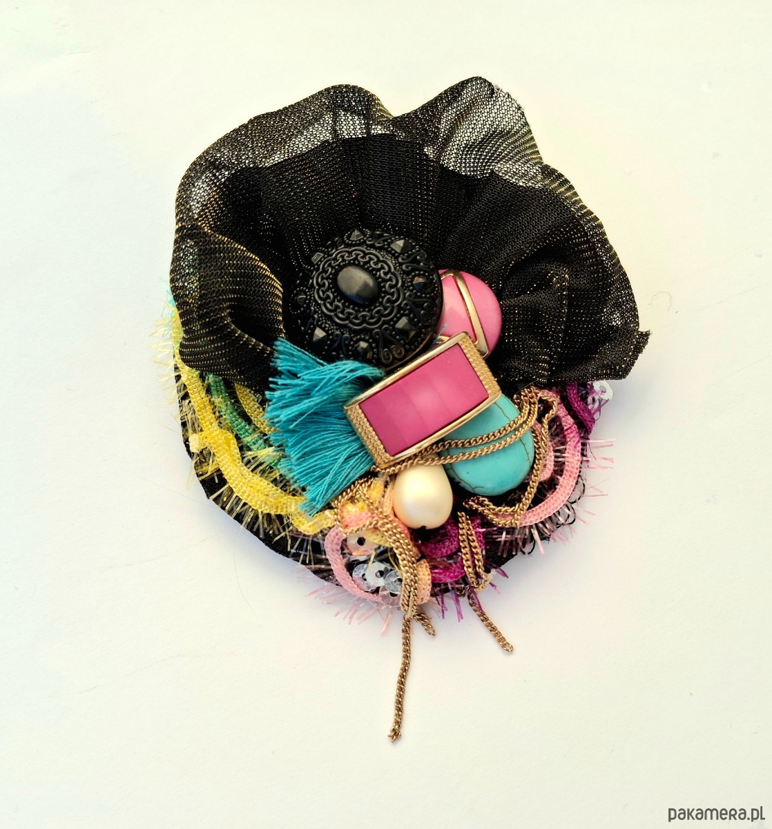 broszka wykonana w technice kolażu w pojedynczym egzemplarzu z myślą o osobach, które szukają urozmaicenia przy codziennych stylizacjach. Jest w niej zawarte wiele struktur i odcieni.Energetyzujące turkusy, przyjemne róże i złoto dodają szyku kreacji będąc jednocześnie bardzo uniwersalnym dodatkiem który można wykorzystać do wielu stylizacji.