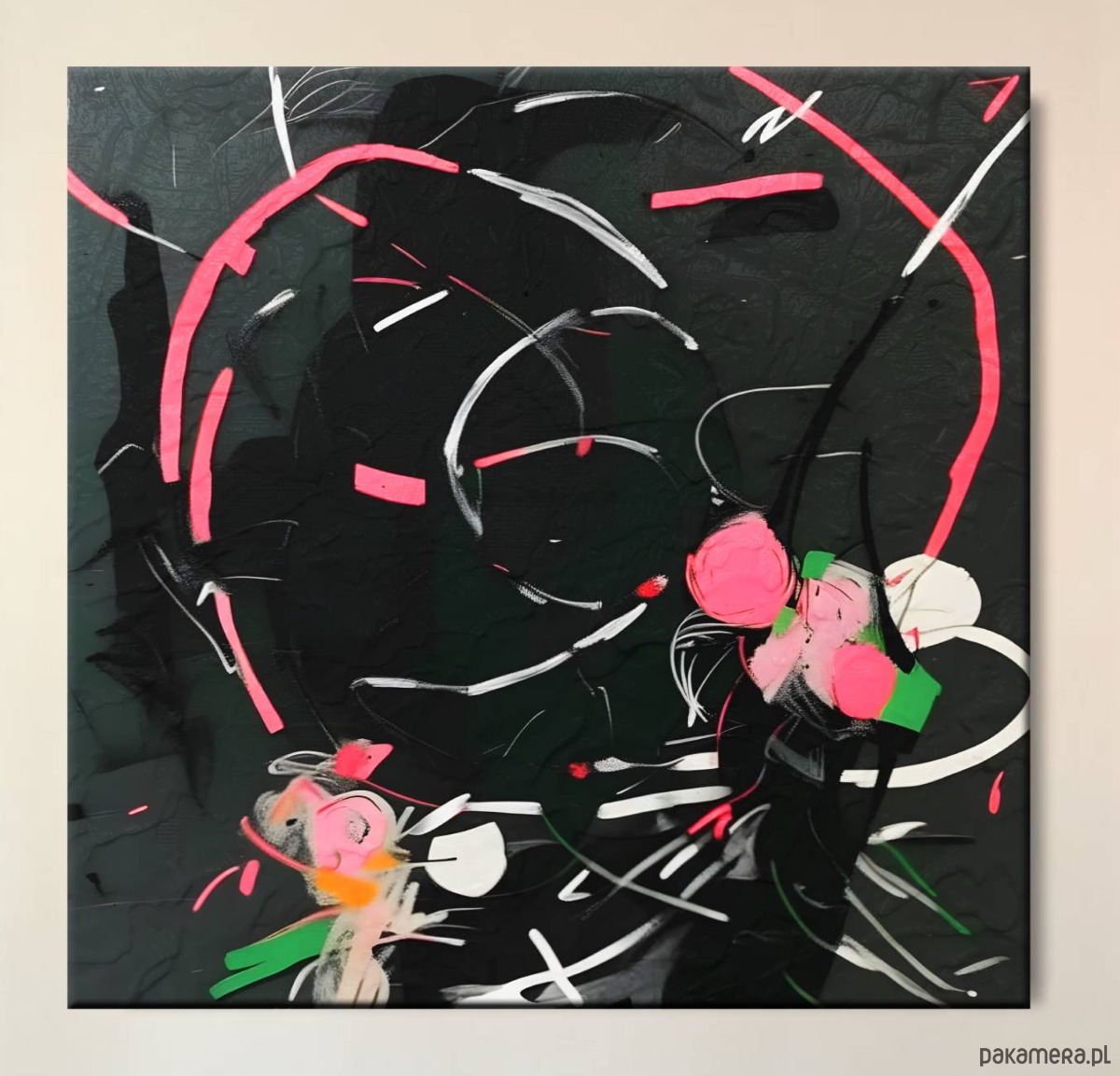 Boki zamalowane, tama nie jest dołączona lecz nie jest konieczna. Obraz gotowy do zawieszenia.