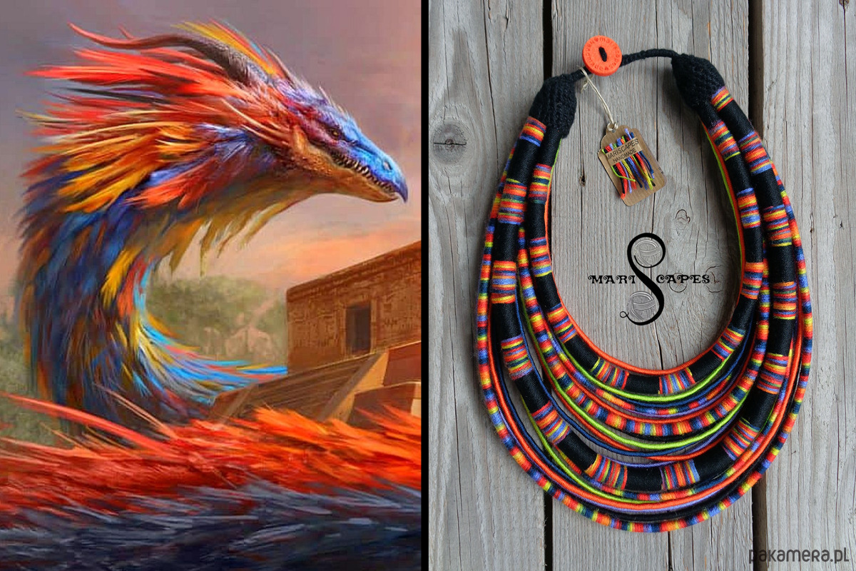 AUTORSKI PROJEKT I WZÓR! Wielowarstwowe kolorowe pasemka przywołują w pamięci masajskie ozdoby.