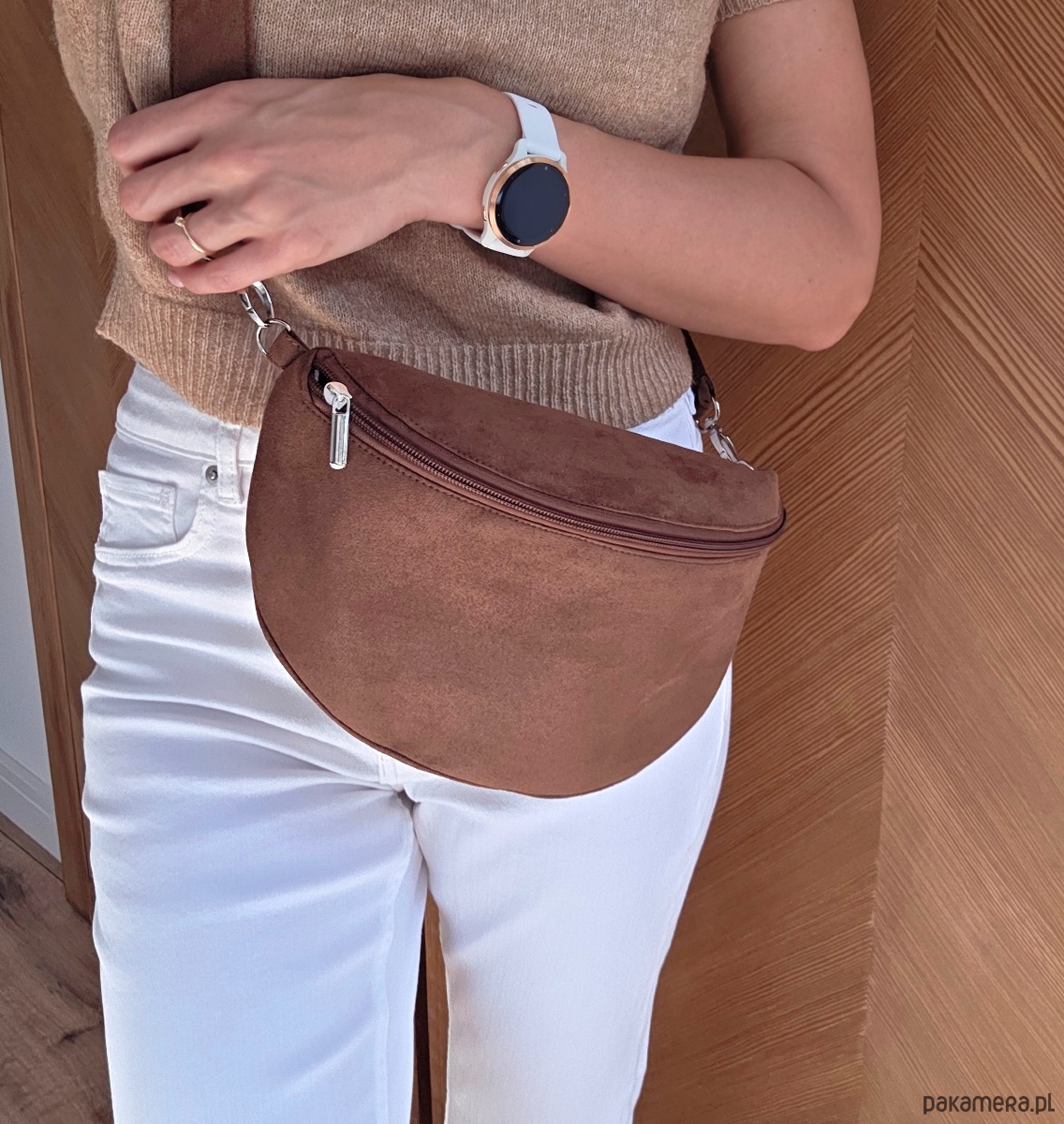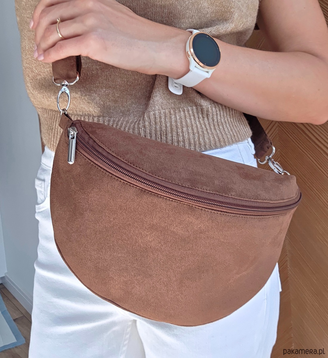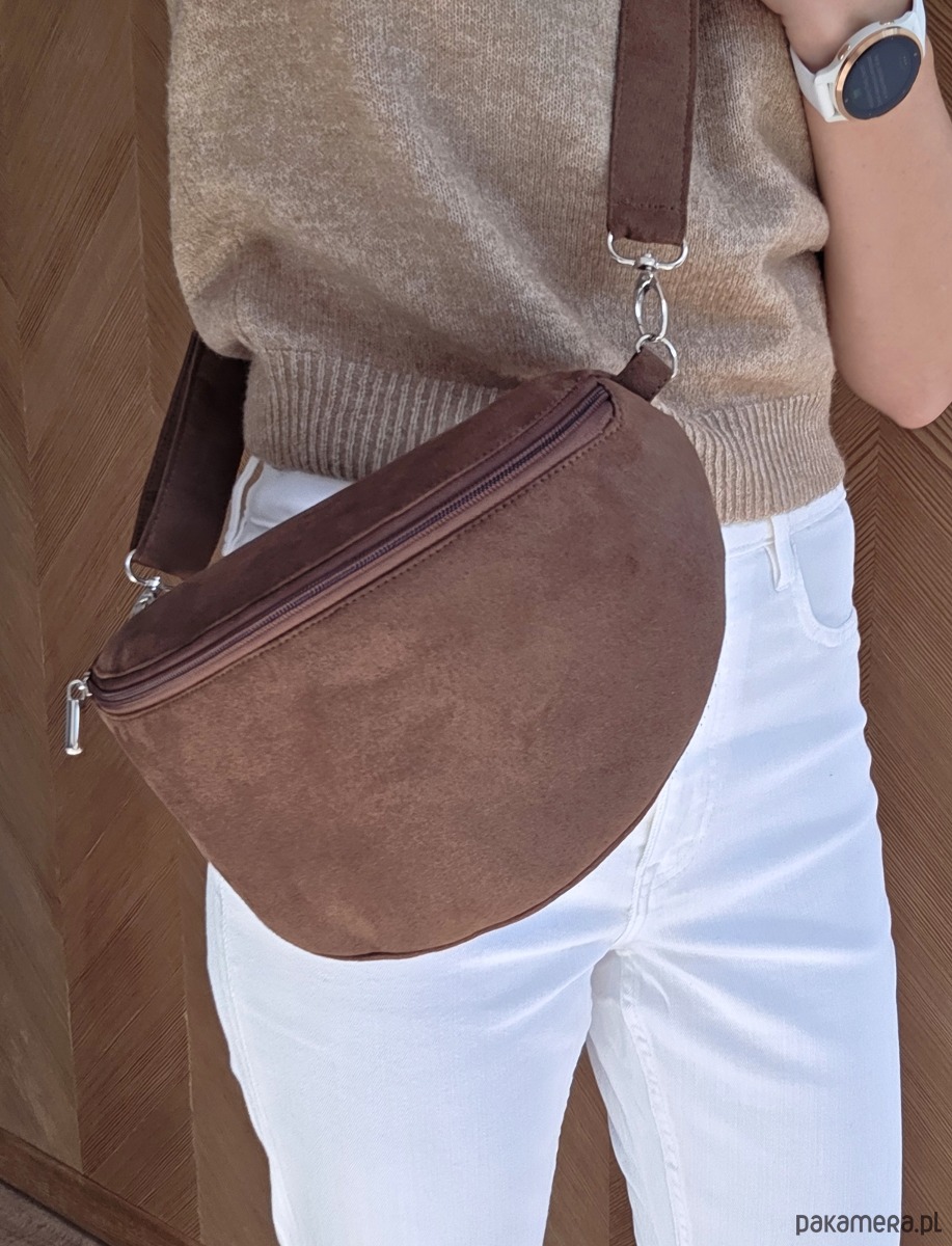 Nerka, saszetka do noszenia na ramię z regulowanym paskiem, zapinana na suwak, w środku mała kieszonka na suwak.