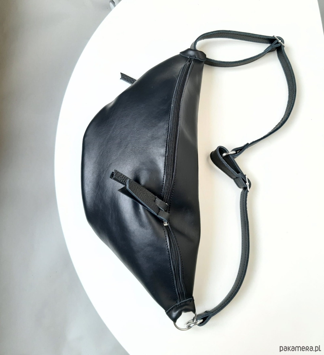 Duża skórzana  nerka w kolorze czarnym. Świetna na spacerki - idealna do  przechowywania telefonu, kluczy i portfela.