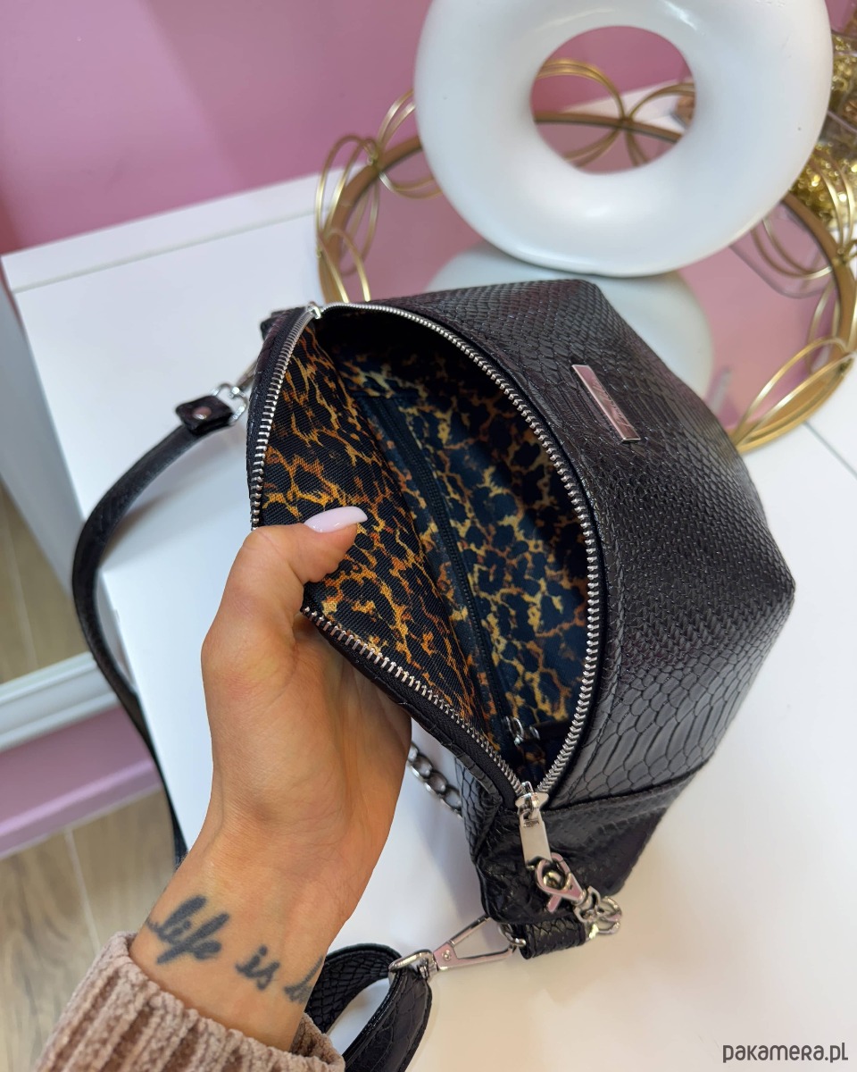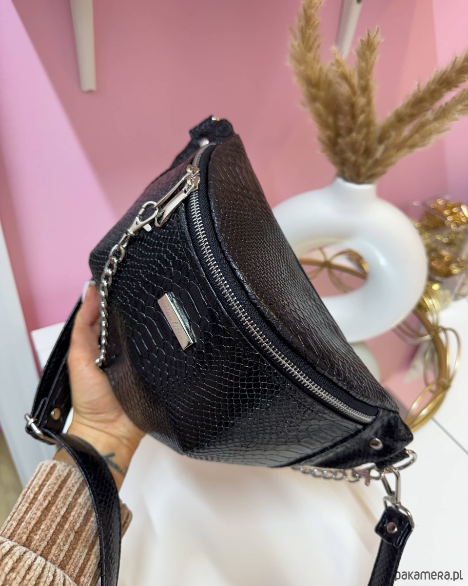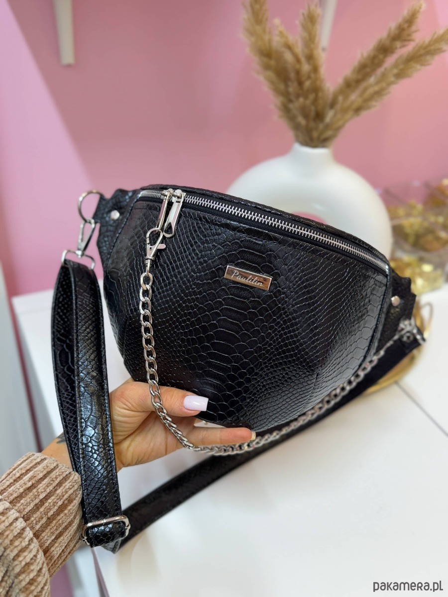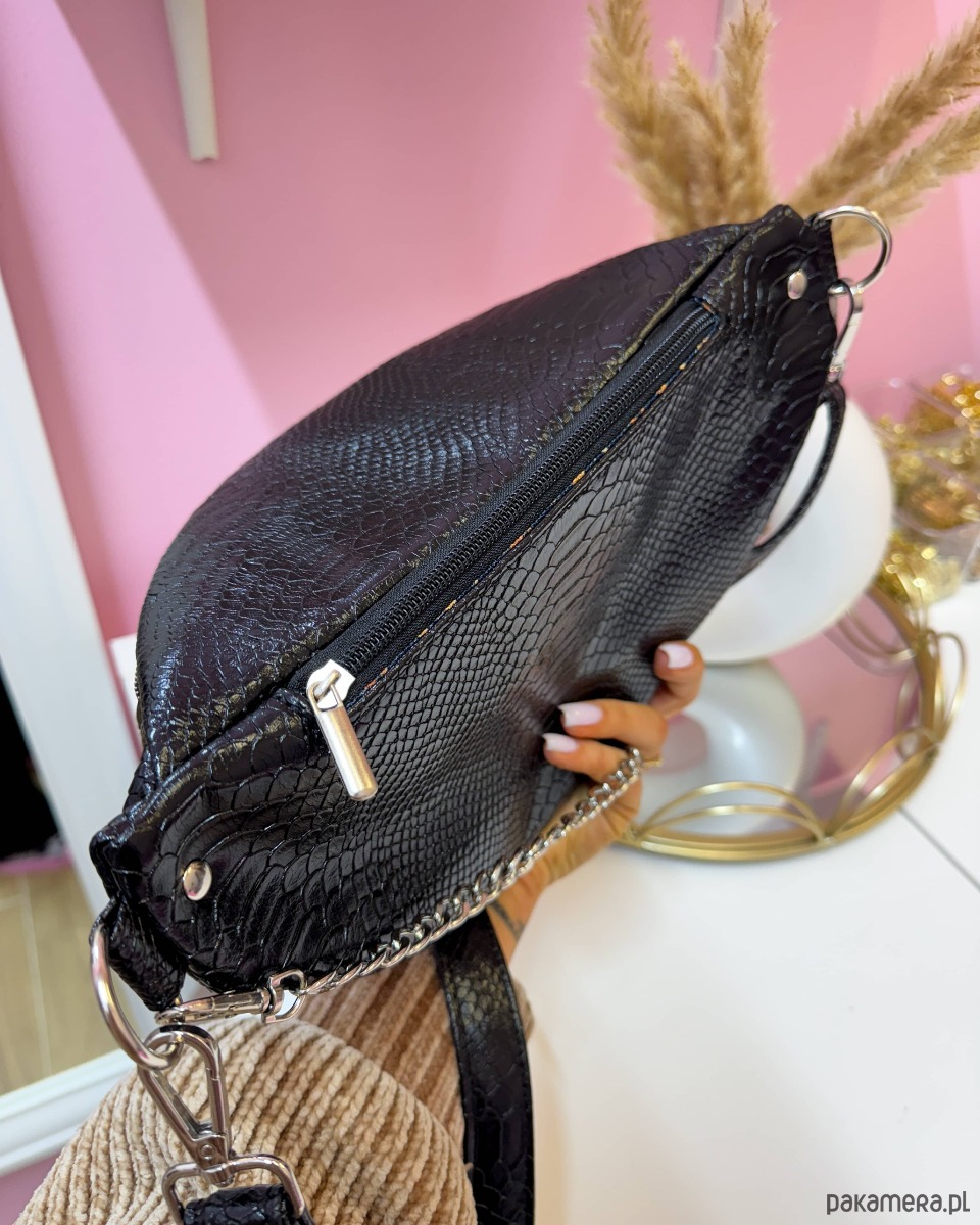 Nerka czarna wężowa z łańcuszkiem dwie kieszonki XL