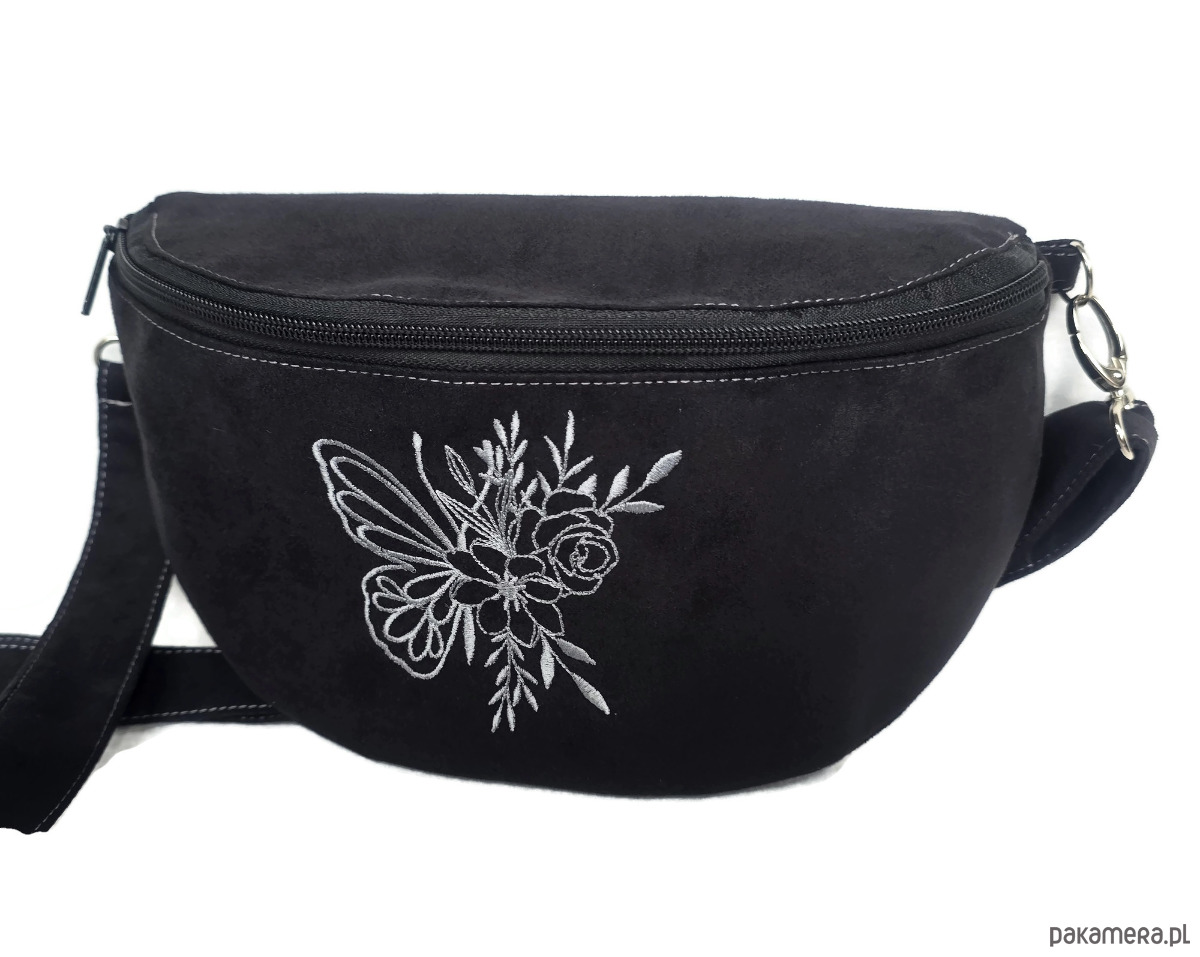 Nerka, saszetka do noszenia na ramię z regulowanym paskiem, zapinana na suwak, w środku mała kieszonka na suwak.