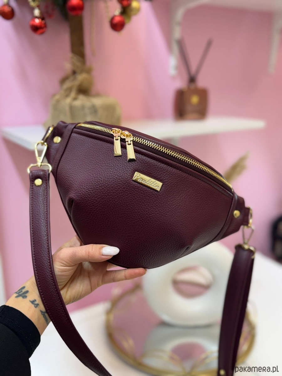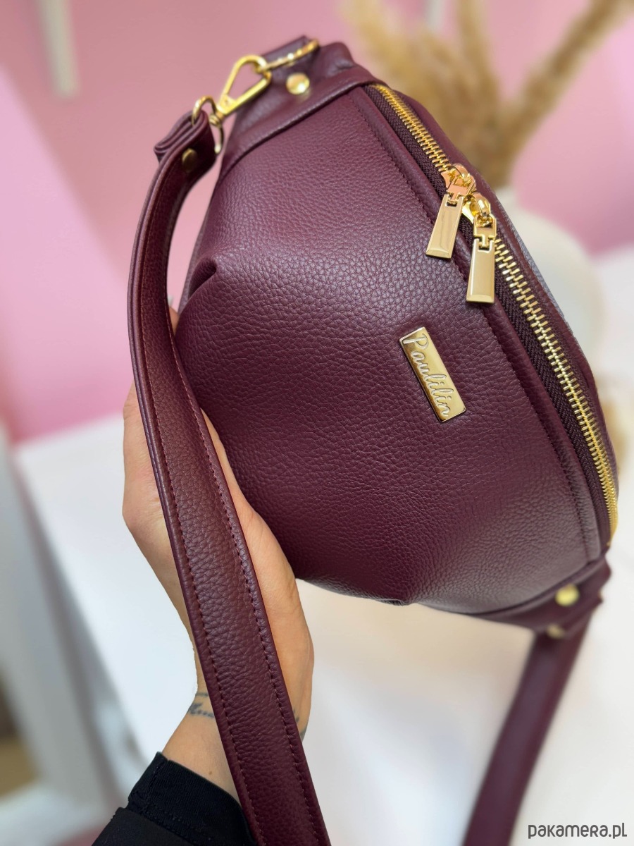 Nerka wykonana z skóry ekologicznej w kolorze bordowym.