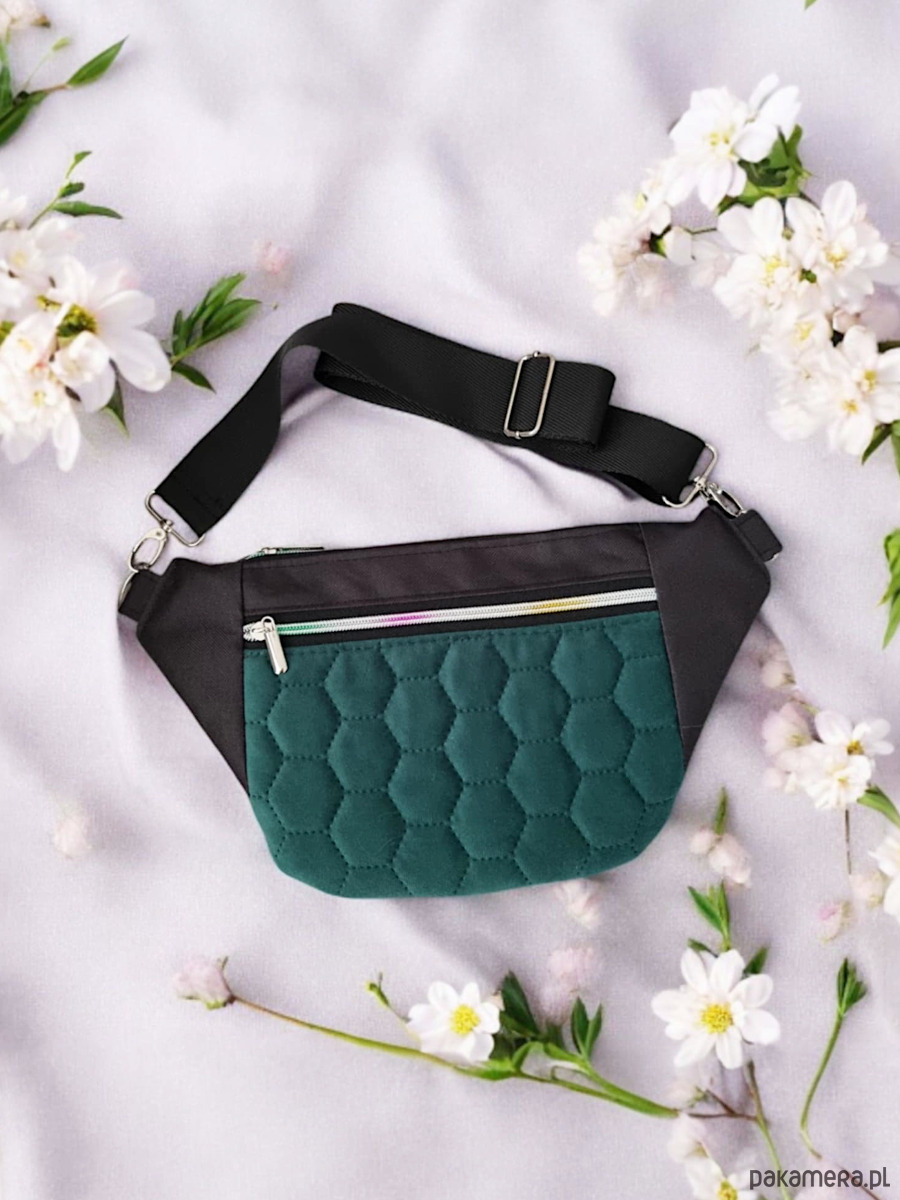 Emma powstała z połączenia dwóch światów: miękkiego, pikowanego weluru, który przyciąga wzrok i dłonie swoją subtelną fakturą, oraz czarnej tkaniny wodoodpornej, która dba o to, byś mogła czuć się swobodnie w każdej pogodzie. Wnętrze kryje wodoodporną podszewkę.