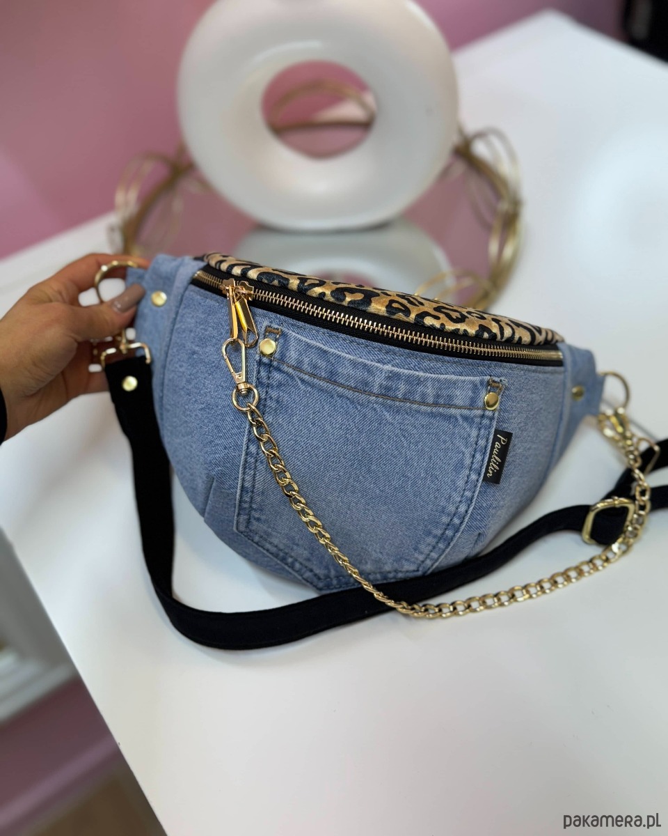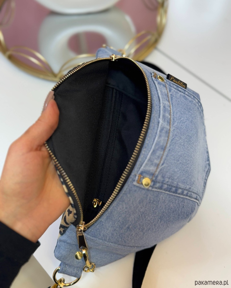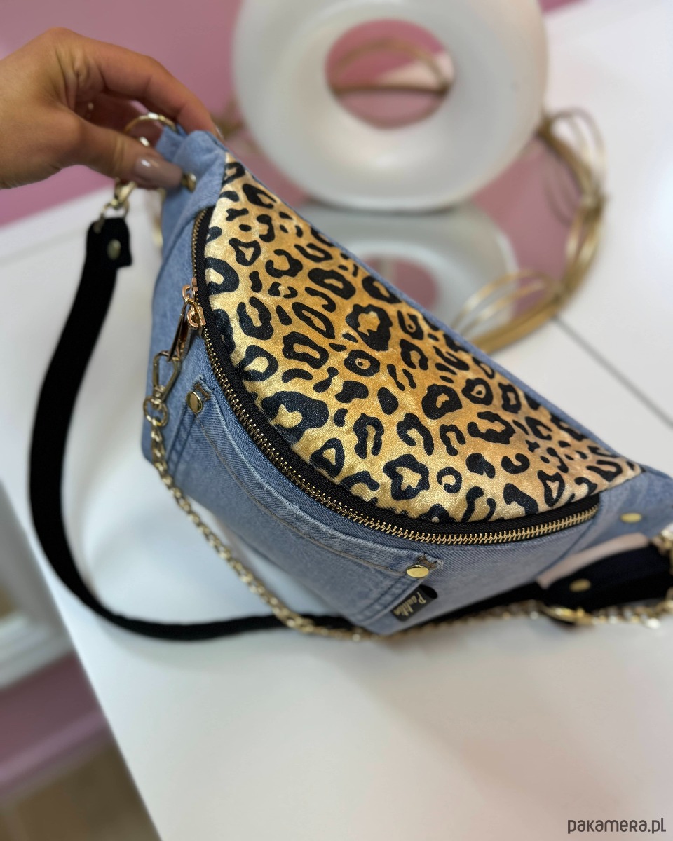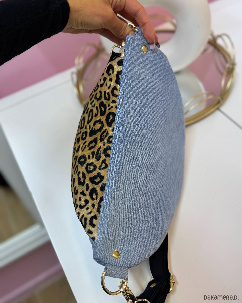 Nerka damska jasna jeansowa z kieszonką i panterką XL