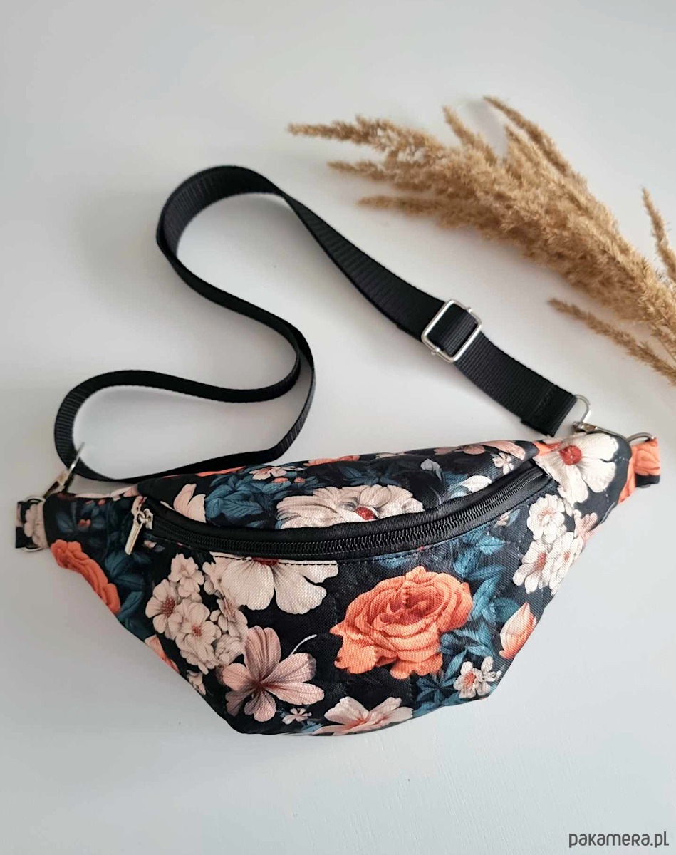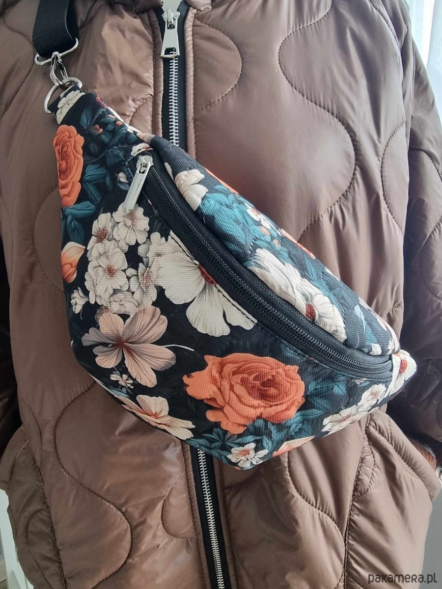 Nerka damska pikowana wodoodporna "Kwiaty" to stylowe i praktyczne akcesorium, idealne na każdą porę roku. Wykonana z wysokiej jakości wodoodpornej tkaniny pikowanej, zachwyca urokliwymi wzorami kwiatów. Nerka w odcieniach czarnego, zieleni, pomarańczy, beżu, co nadaje jej uroku i kobiecości. Srebrne okucia, regulowany pasek parciany, wodoodporna podszewka. Zamek ze srebrnym suwakiem, srebrne okucia. Mimo swojej lekkości i miękkości nerka trzyma formę i pomieści duży telefon, średni portfel oraz klucze. Idealna na spacery po mieście, lesie, na spotkania z przyjaciółmi, zakupy, spacery z małymi dziećmi oraz codzienne wyjścia.
