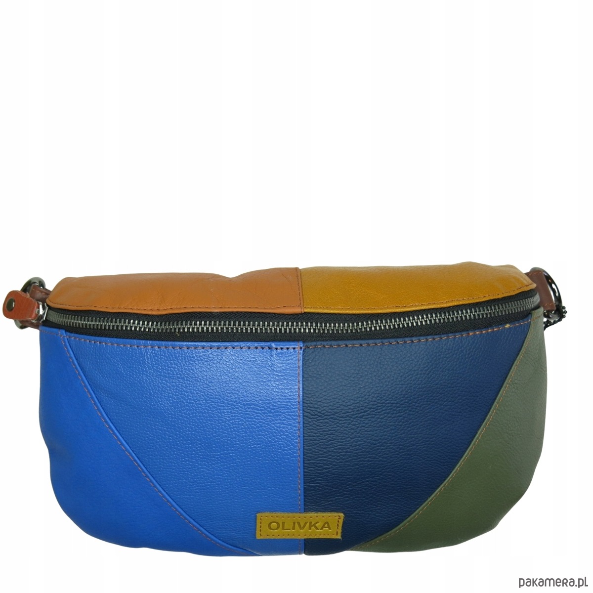 Nerka damska skórzana pojemna na ramię szeroki pasek regulowany OLIVKA
