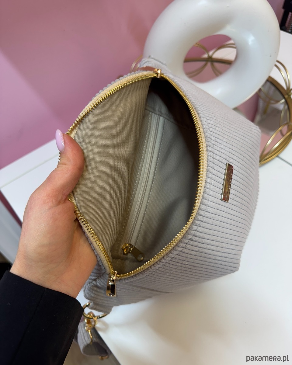 Nerka wykonana z wysokiej jakości sztruksu tapicerskiego, który jest miękki w dotyku a jednocześnie wytrzymały. Materiał pięknie się prezentuje, a widoczne prązki dodają oryginalności. Nerka, która będzie idealnym towarzyszem na wszelkie spacery, wyjścia, imprezy. Wszystko masz pod ręką. W środku nerka posiada kieszonkę zapinaną na zamek.
