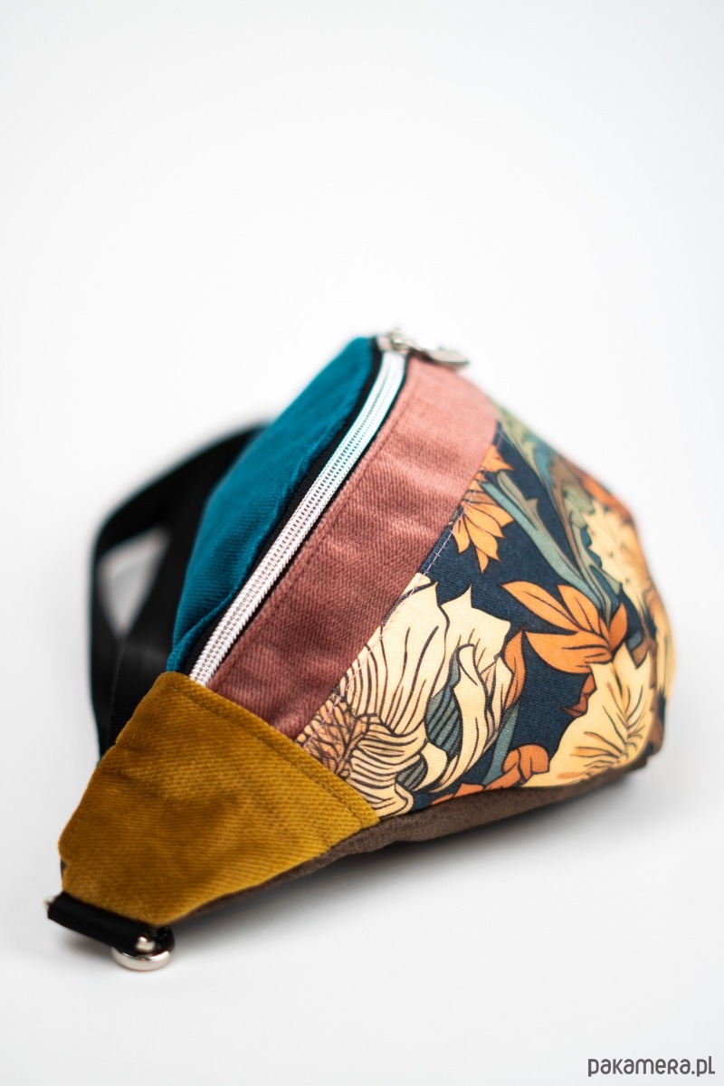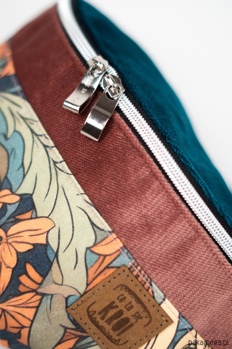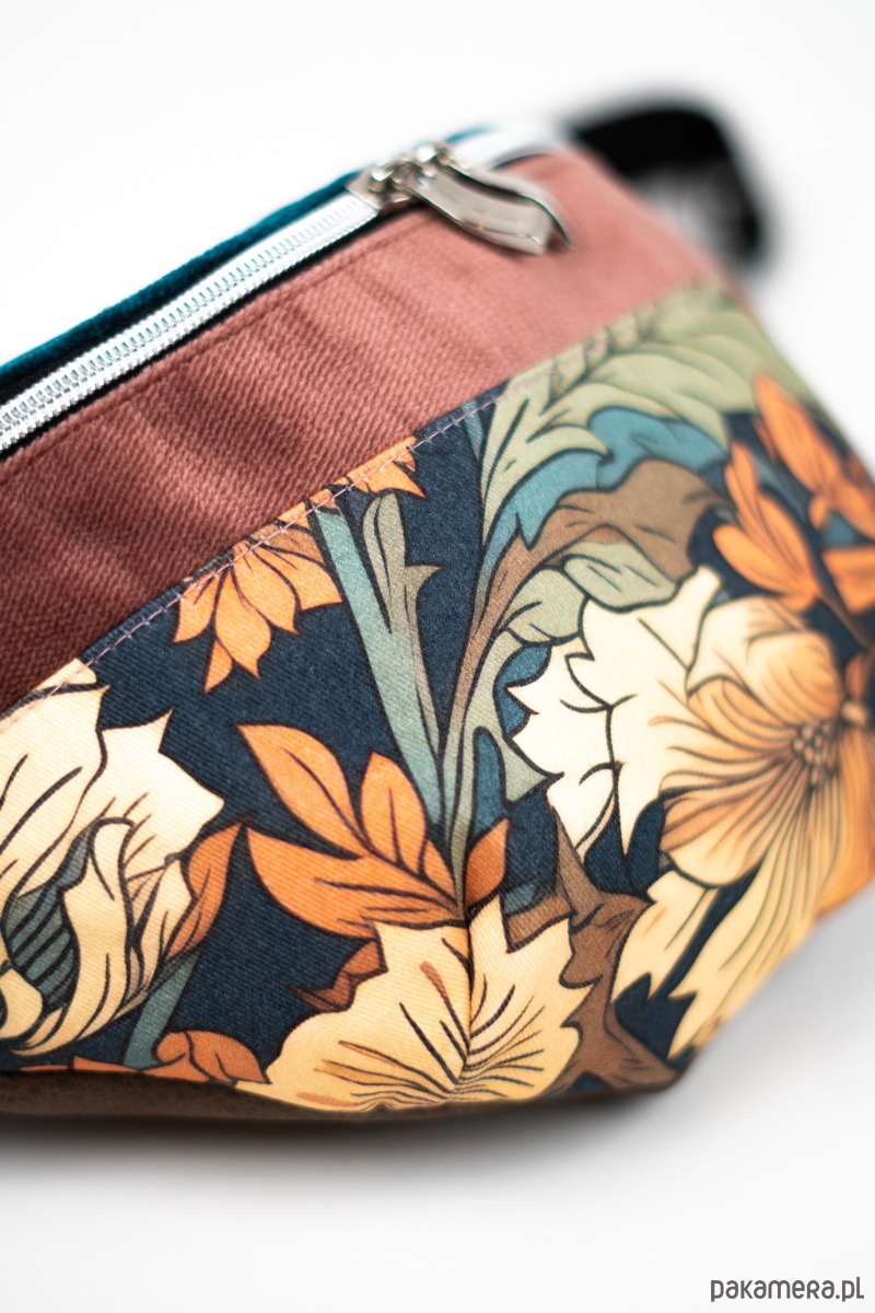 Nerka w kwiatowe wzory z gęsto tkanej gabardyny - funkcjonalna i stylowa. Z dodatkiem trwałych i wytrzymałych welurowych tkanin tapicerskich. Idealna na co dzień i w podróży, dodaje charakteru każdej stylizacji.