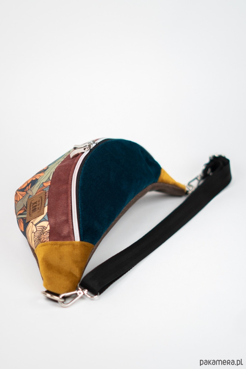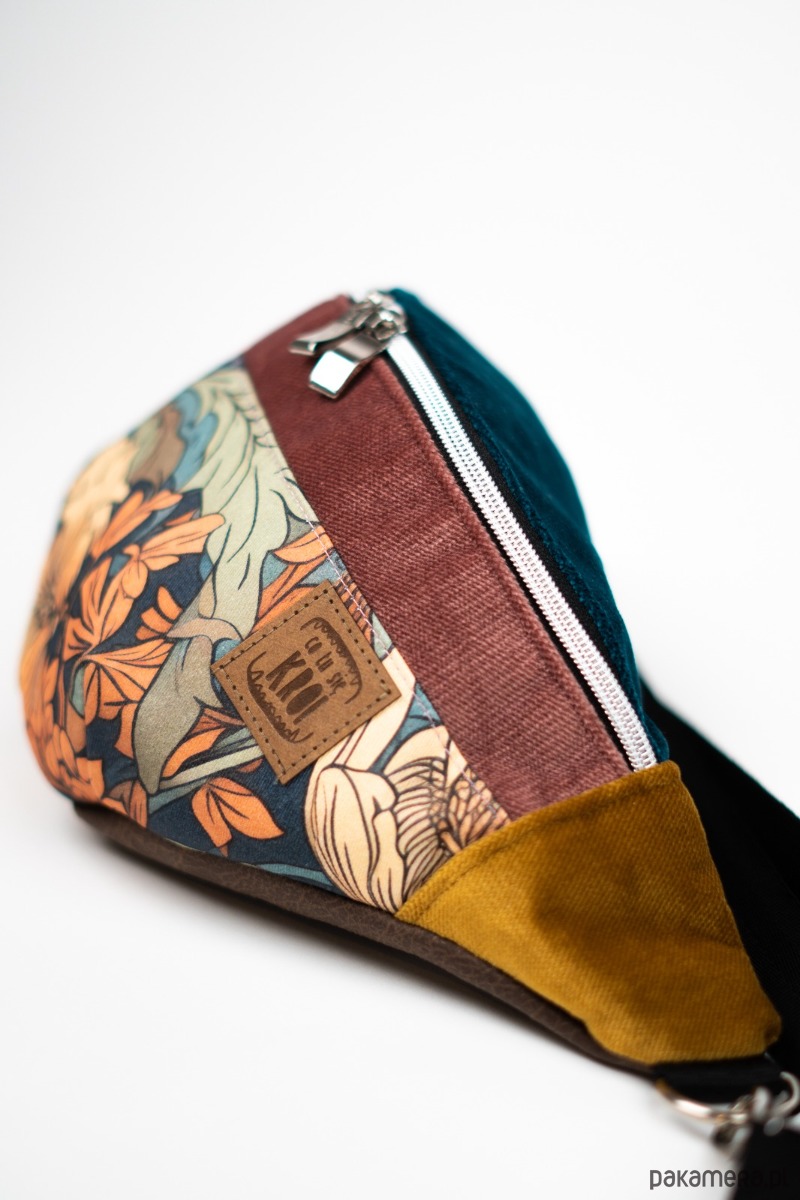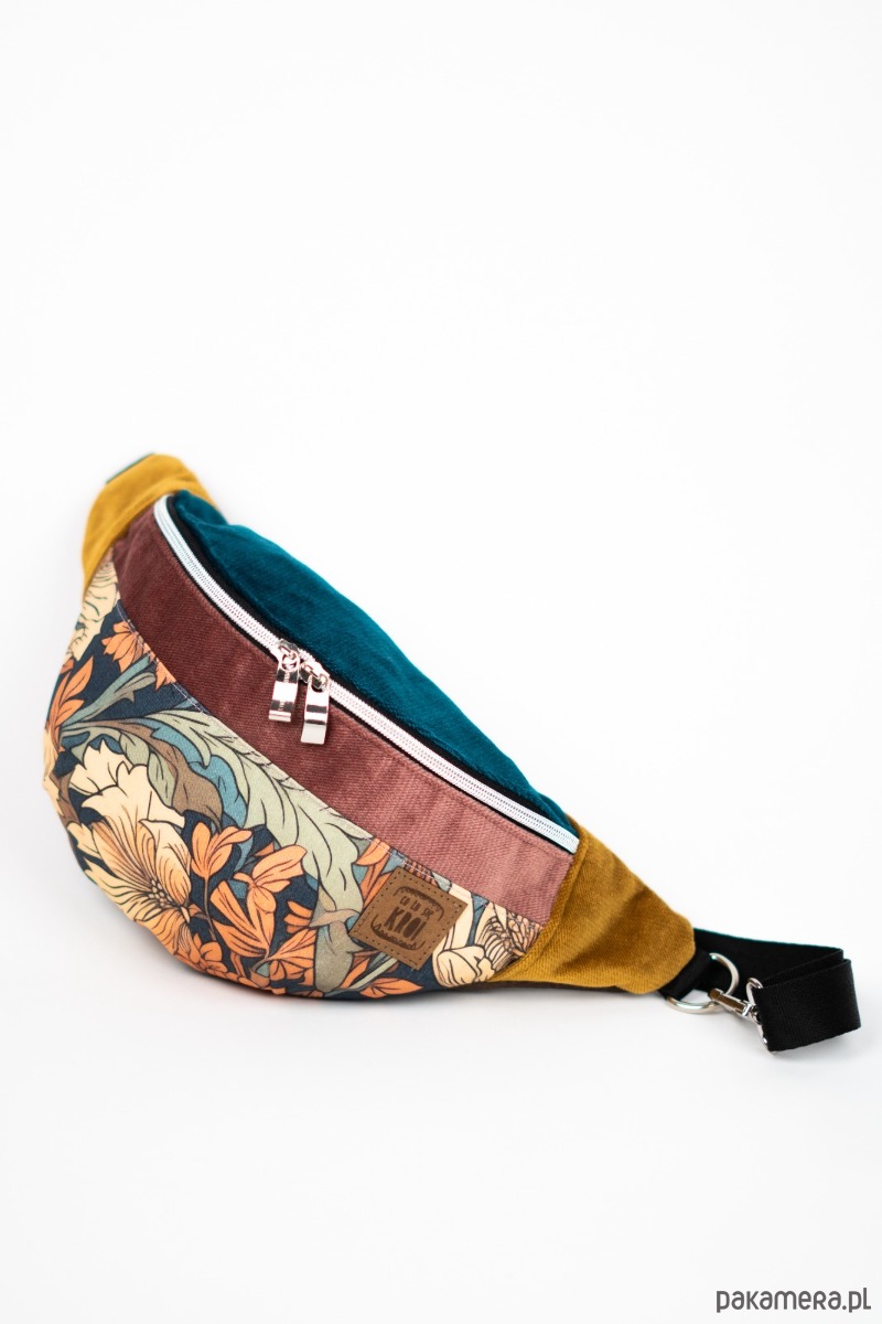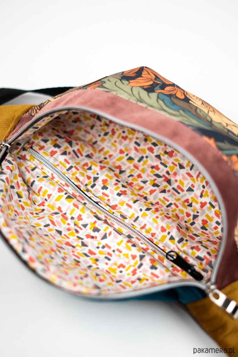 Nerka w kwiatowe wzory z gęsto tkanej gabardyny - funkcjonalna i stylowa. Z dodatkiem trwałych i wytrzymałych welurowych tkanin tapicerskich. Idealna na co dzień i w podróży, dodaje charakteru każdej stylizacji.
