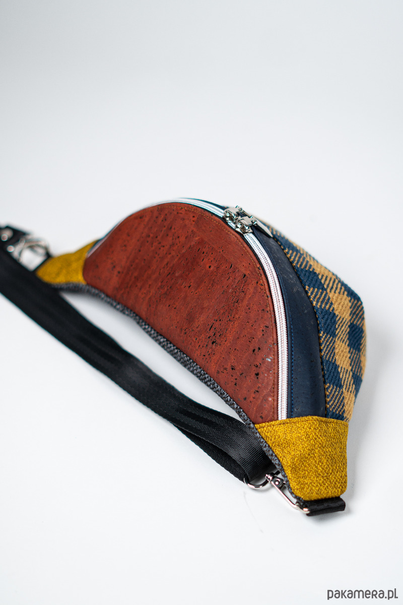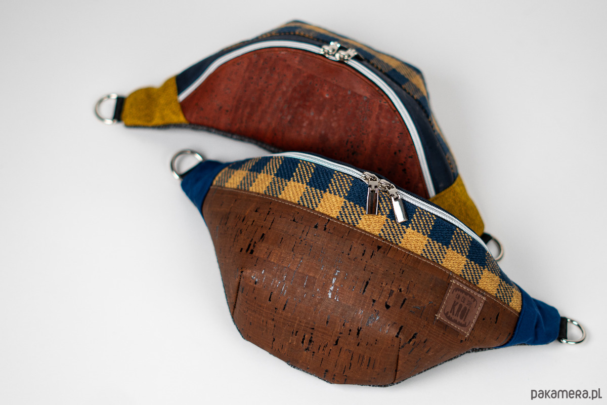 MATERIAŁ: kolorowa tkanina korkowa, tkaniny tapicerskie, wersja z bawełnianą podszewką 125 g/m2, pas samochodowy 25 mm.