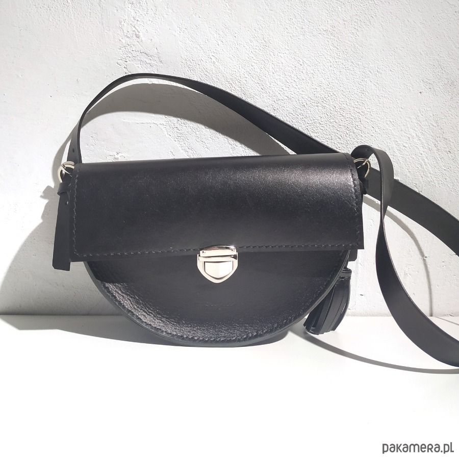 -Nerka torebka damska na miękkim pasku na ramię z naturalnej skóry w kolorze czarnym.