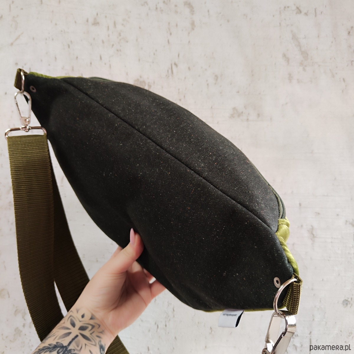 Unikalność: Tylko jedna sztuka! Bądź pewny, że nikt inny nie będzie miał takiej samej nerki jak Ty. Zerowaste: Wspieraj ruch zerowaste i przyczyniaj się do ochrony środowiska poprzez świadome zakupy. Regulowany pasek nośny z możliwością wymiany (nerka posiada po bokach 2 metalowe półkola, które umożliwiają szybkie zapinanie/ wymianę paska np. na inny kolor). Wymiary: 34cmx20cmx10cm (+/-1cm). W środku kieszonka zapinana na zamek. Pasek do nerki zapinany oddzielnie (tak jak w nerkach mini oraz XXL), obwód minimalny z nerką ok. 104cm, maksymalny 148cm. Nerka gigant (jeszcze większa od nerki XXL) idealnie nadaje się do noszenia z tyłu na plecach. Pomieści najpotrzebniejsze rzeczy podczas spacerów (wejdzie nawet mała butelka z wodą oraz składana parasolka).