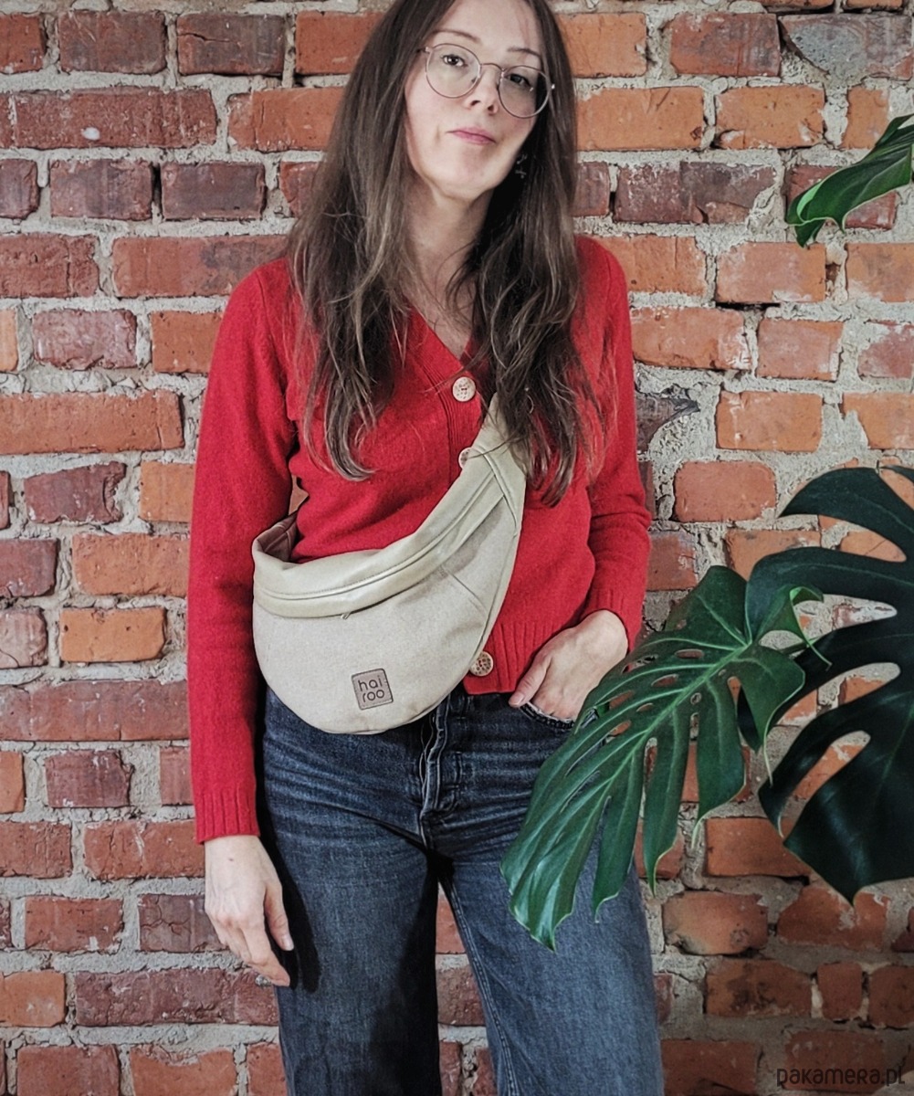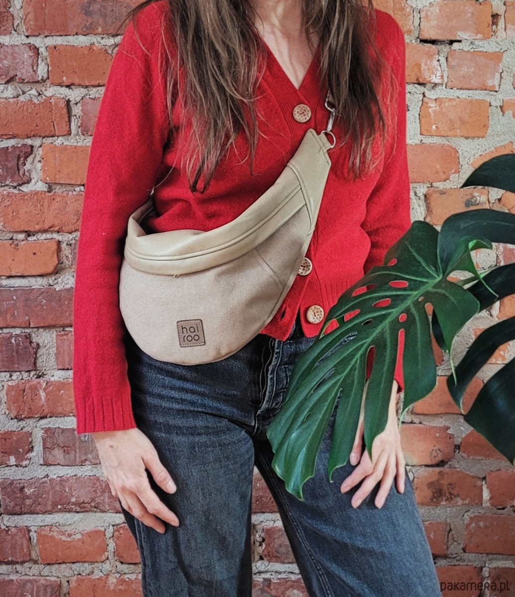 Nerka "Haru" beżowa bawełniana z ekoskórą