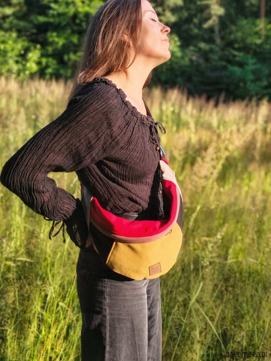 Została wykonana z bawełny canvas i bawełny drelich w kolorze żółtym, czerwonym, czarnym, różowym i beżowym w duchu no waste.