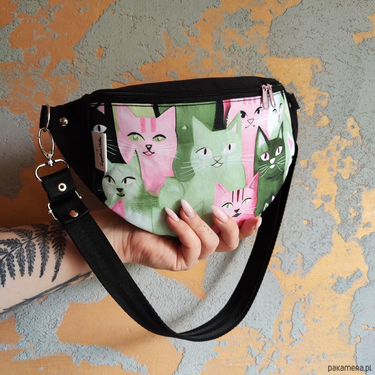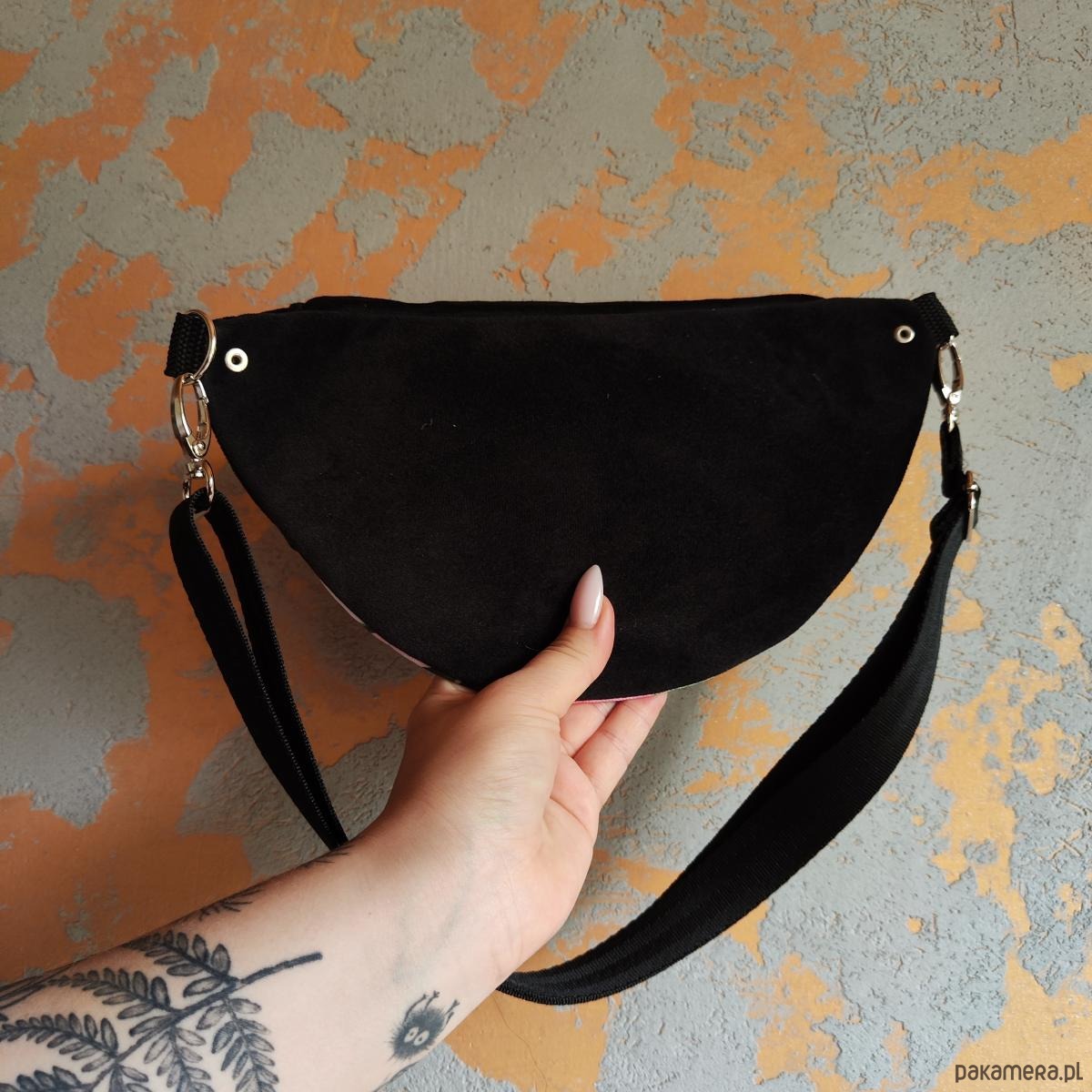 Nerka uszyta z: poliester wodoodporny z nadrukiem przód nerki, eko zamsz czarny boki nerki, klapa oraz tył, bawełna kolor butelkowa zieleń środek nerki. Regulowany pasek nośny z możliwością wymiany (nerka posiada po bokach 2 półkola, które umożliwiają szybkie zapinanie/ wymianę paska np. na inny kolor) . Wymiary samej nerki: 27cmx16cmx7cm (+/- 2cm). Obwód nerki wraz z paskiem minimum 90cm, maksymalnie 140cm (jeśli interesuje Cię inny wymiar, napisz do mnie wiadomość). W środku nerki kieszonka na zamek.