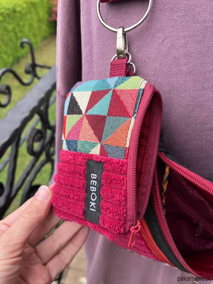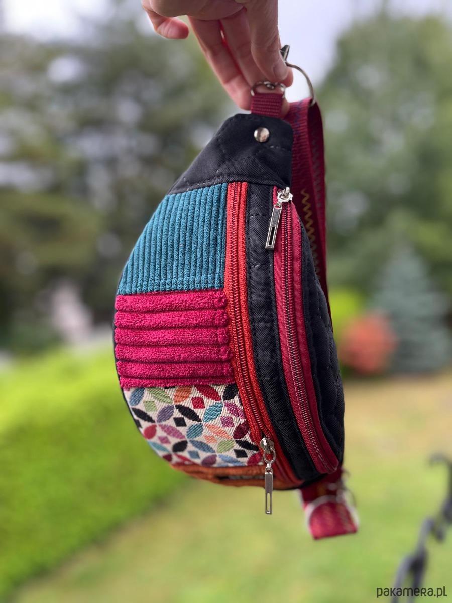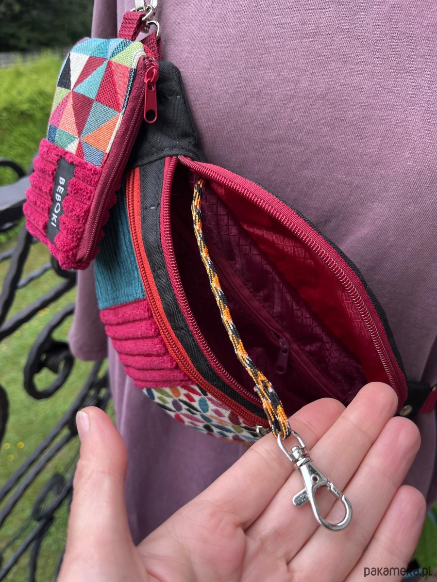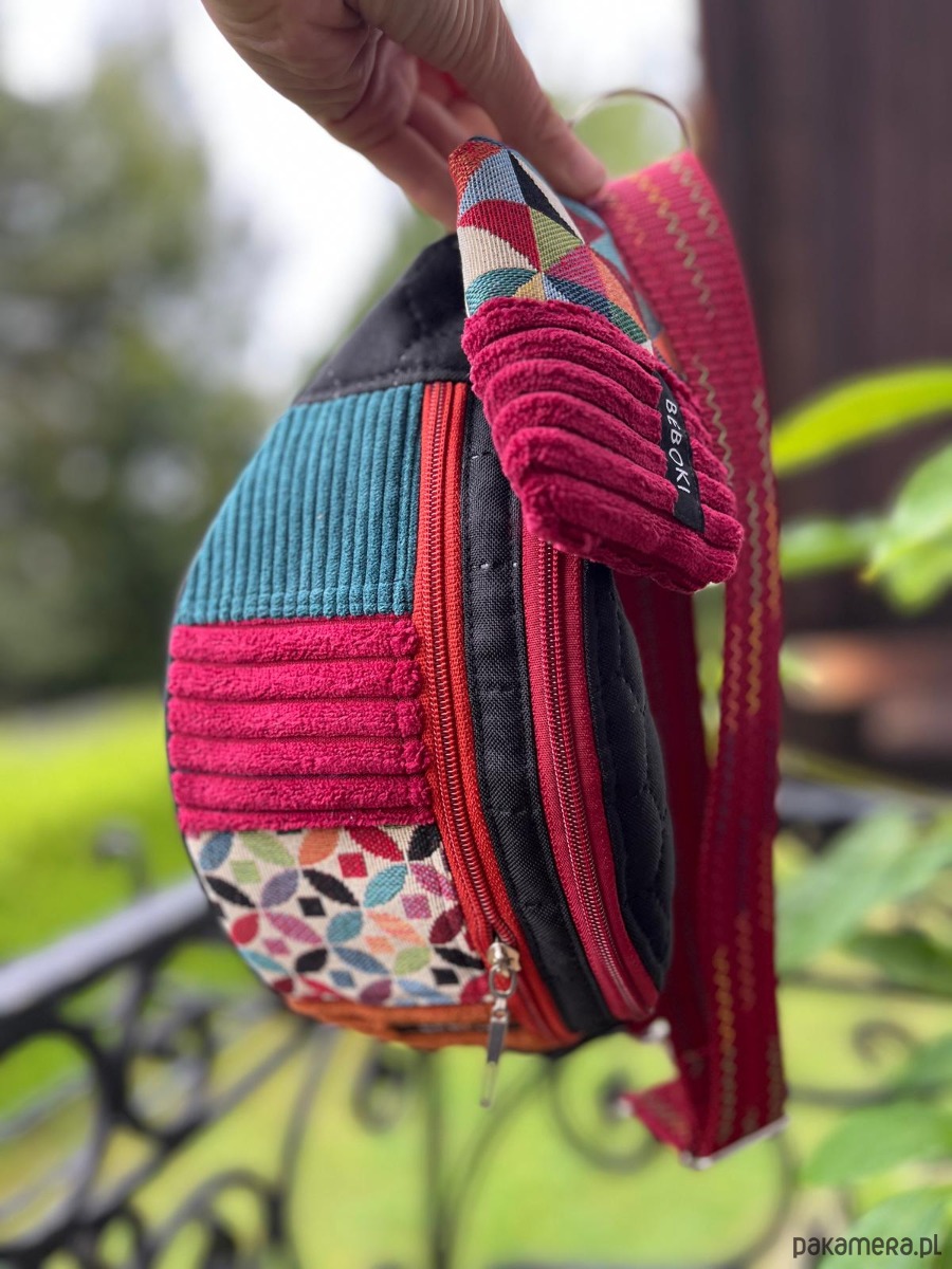 Kolorowa, energetyczna i absolutnie wyjątkowa – ta nerka BEBOKI w wersji patchworkowej to połączenie funkcjonalności i artystycznego designu. Uszyta ręcznie z różnorodnych materiałów – od miękkiego struksu i tkaniny tapicerskiej po wodoodporną pikowaną tkaninę – zachwyca trwałością i charakterem.
