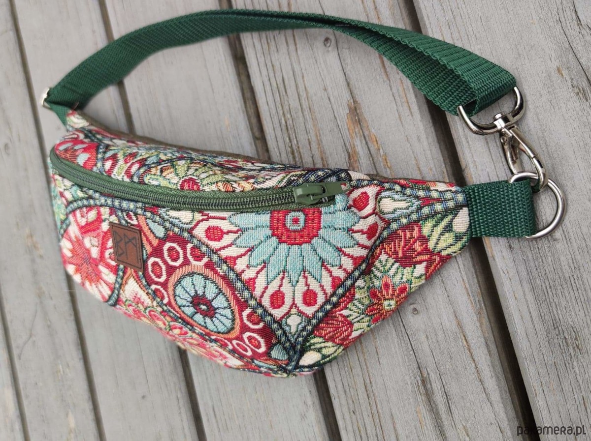 Średniej wielkości nerka wykonana z solidnego materiału i eko skóry. Poza obszerną komorą główną posiada wewnętrzną kieszonkę zamykaną na suwak. Wymiary; szerokość 27cm, wysokość 17cm, głębokość 7cm, obwód pasa regulowany do 130cm.