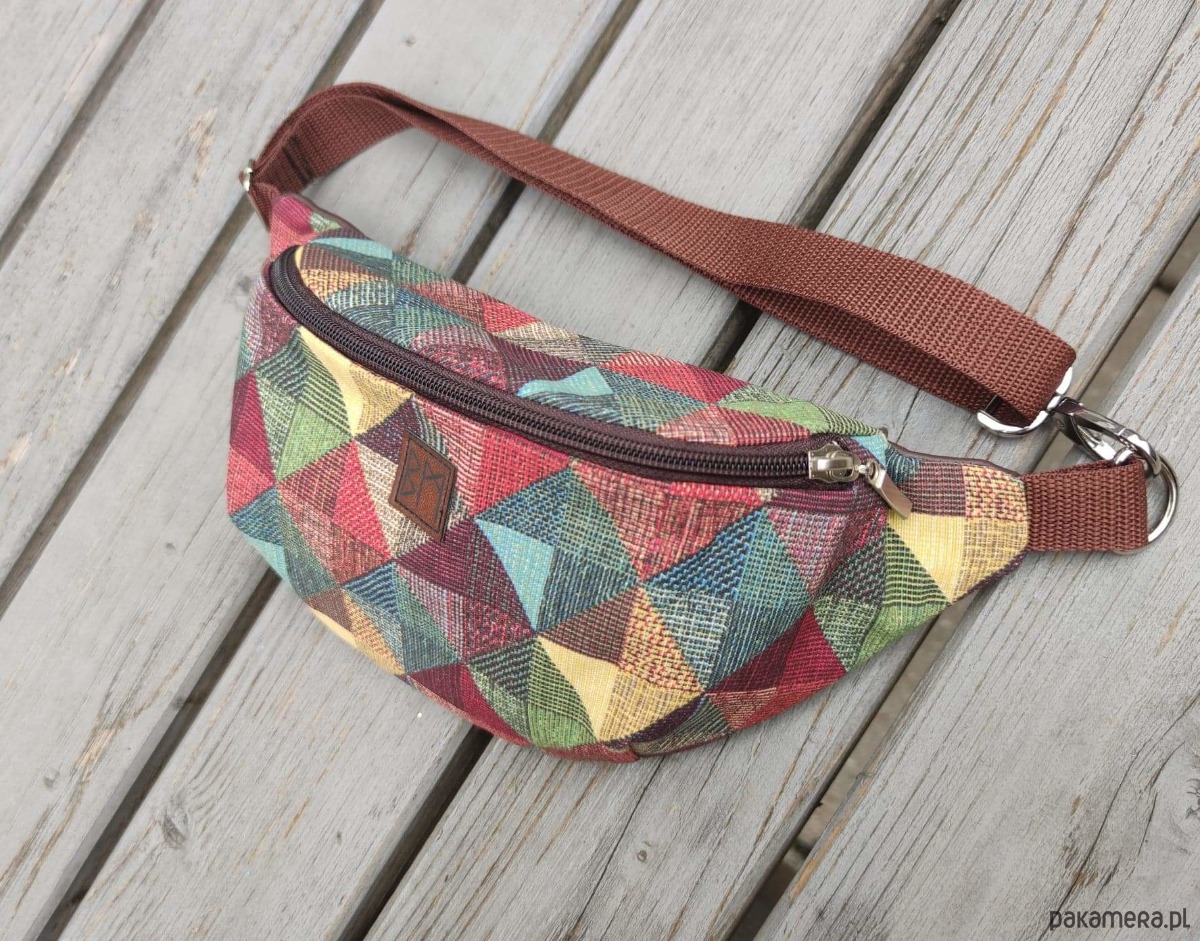 Średniej wielkości nerka wykonana z solidnego materiału i eko skóry. Poza obszerną komorą główną posiada wewnętrzną kieszonkę zamykaną na suwak. Wymiary; szerokość 27cm, wysokość 17cm, głębokość 7cm, obwód pasa regulowany do 130cm.