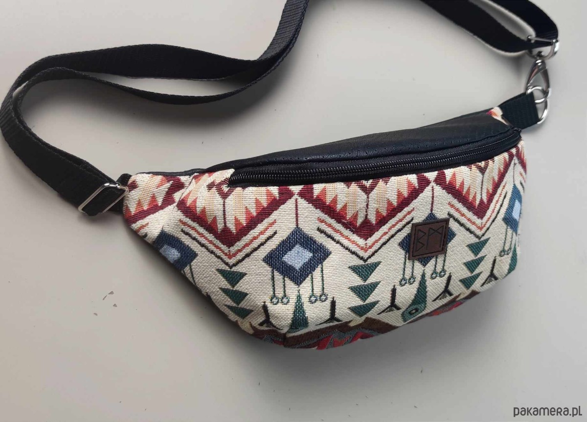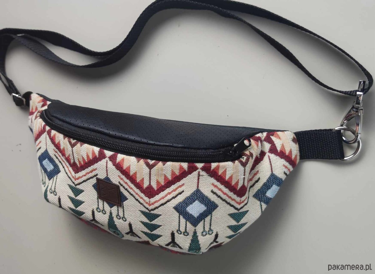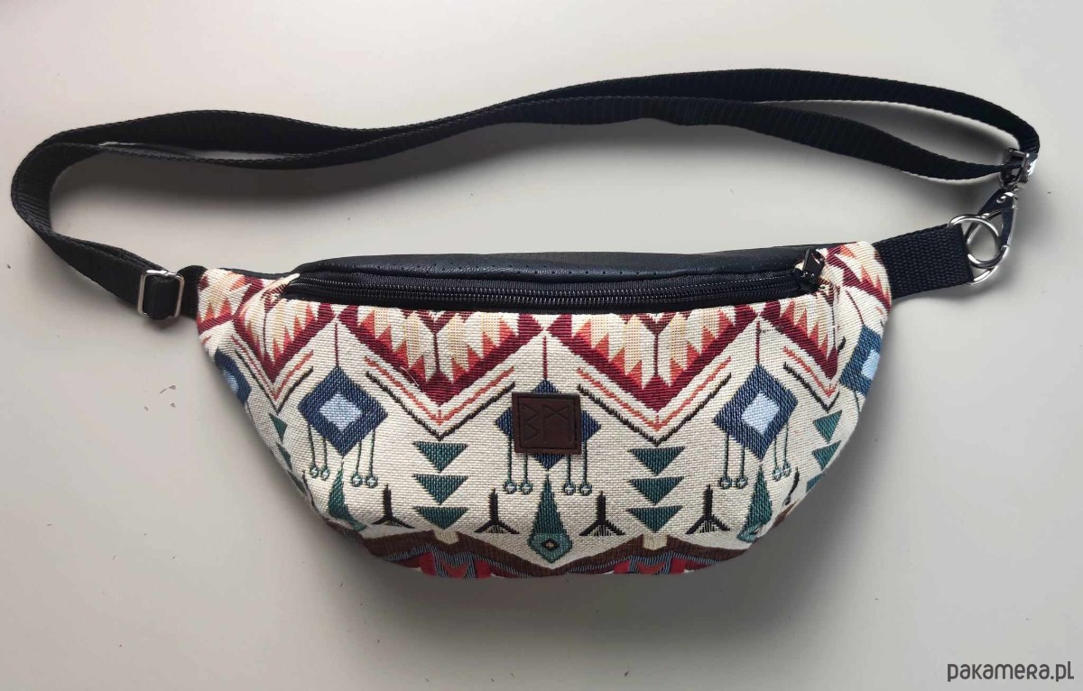 Średniej wielkości nerka wykonana z solidnego materiału i imitacji skóry. Poza obszerną komorą główną posiada wewnętrzną kieszonkę zamykaną na suwak. Wymiary; szerokość 27cm, wysokość 17cm, głębokość 7cm, obwód pasa regulowany do max. 130cm.