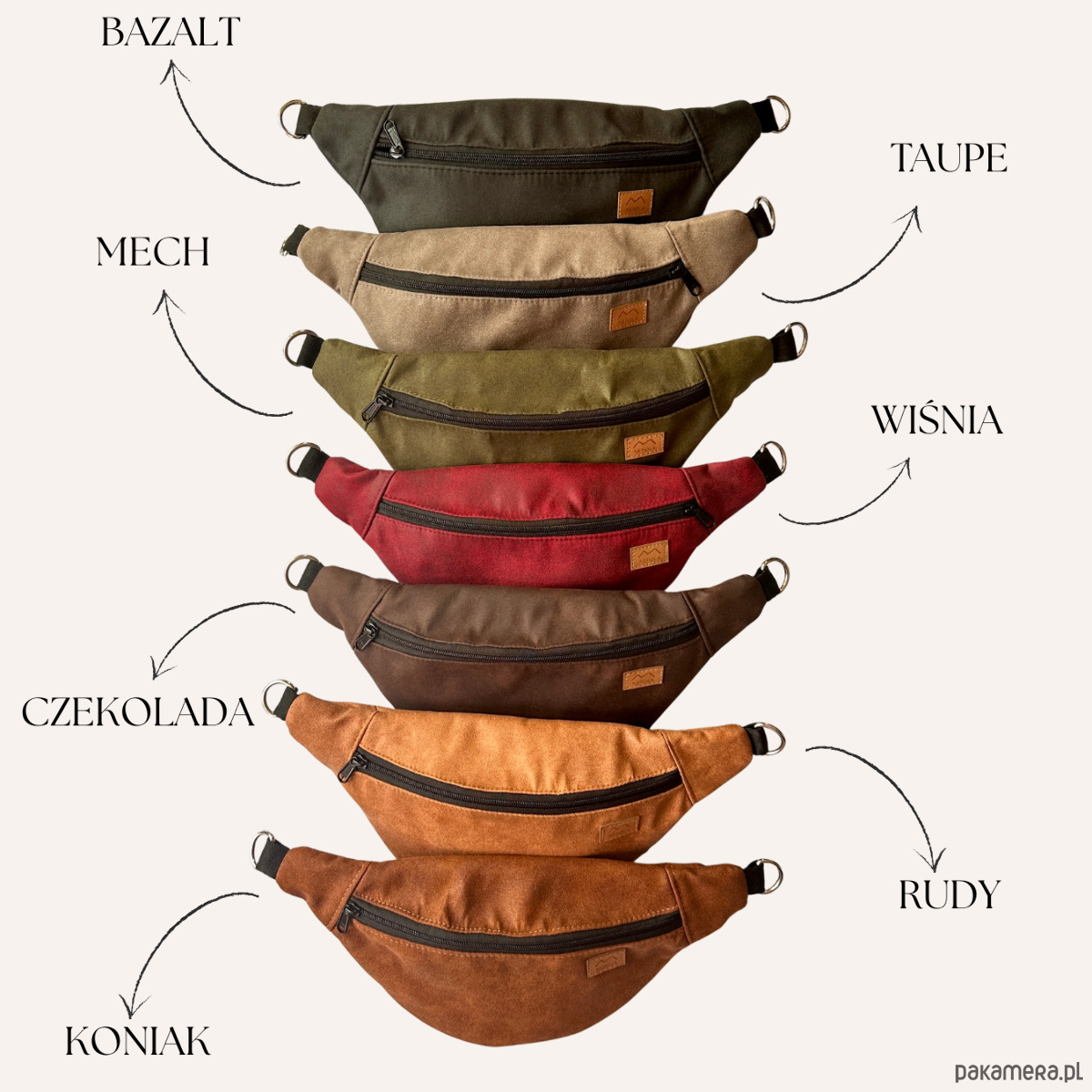 Solidna Nerka, którą możesz nosić na biodrze lub przez ramię, wykonana z wysokiej jakości materiału tapicerskiego oraz nieprzemakalnej podszewki. Posiada miękki, obszyty pasek podobny do pasów samochodowych i porządne zamki. 3 kieszonki zapanują nad bałaganem, a szeroka kieszeń z tyłu chętnie ochroni telefon przed kradzieżą - czuj się bezpiecznie i miej wolne ręce!