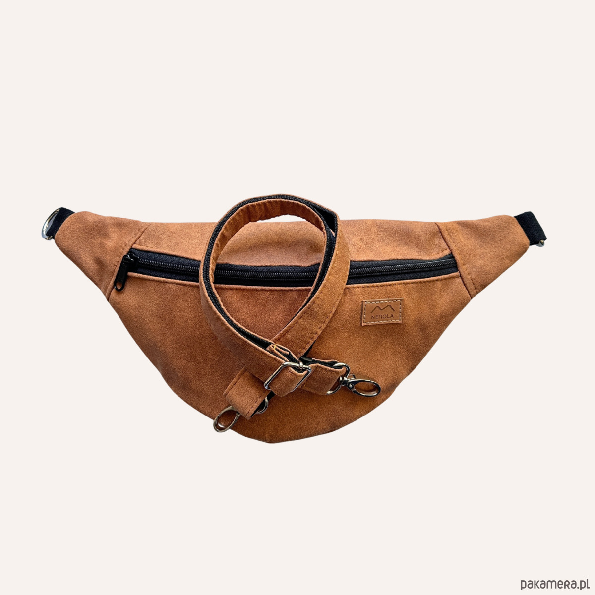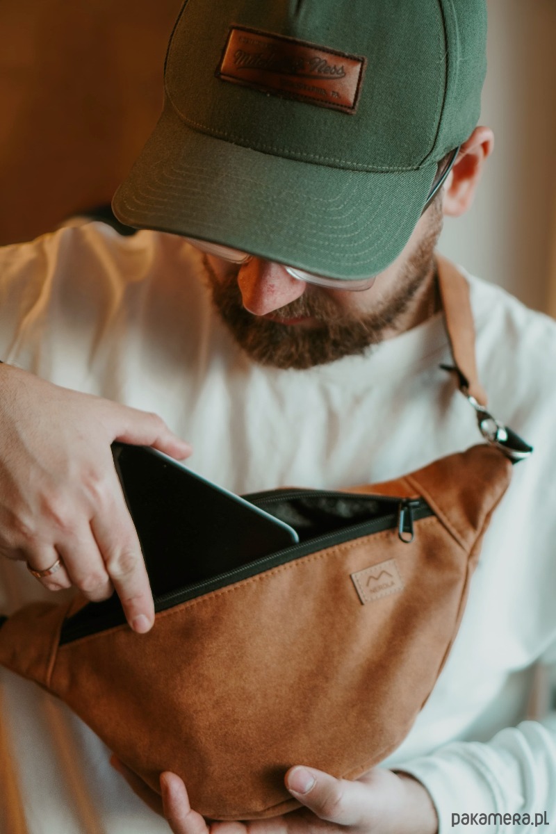 Solidna Nerka, którą możesz nosić na biodrze lub przez ramię, wykonana z wysokiej jakości materiału tapicerskiego oraz nieprzemakalnej podszewki. Posiada miękki, obszyty pasek podobny do pasów samochodowych i porządne zamki. 3 kieszonki zapanują nad bałaganem, a szeroka kieszeń z tyłu chętnie ochroni telefon przed kradzieżą - czuj się bezpiecznie i miej wolne ręce!