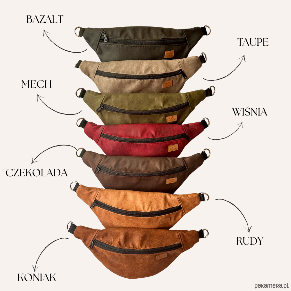 Solidna Nerka, którą możesz nosić na biodrze lub przez ramię, wykonana z wysokiej jakości materiału tapicerskiego oraz nieprzemakalnej podszewki. Posiada miękki, obszyty pasek podobny do pasów samochodowych i porządne zamki. 3 kieszonki zapanują nad bałaganem, a szeroka kieszeń z tyłu chętnie ochroni telefon przed kradzieżą - czuj się bezpiecznie i miej wolne ręce!