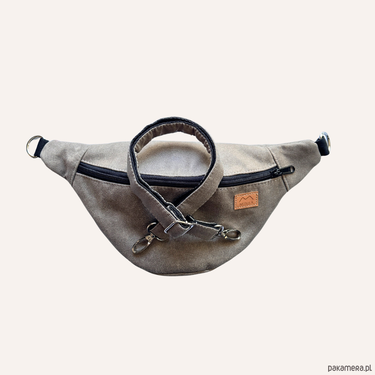 Solidna Nerka, którą możesz nosić na biodrze lub przez ramię, wykonana z wysokiej jakości materiału tapicerskiego oraz nieprzemakalnej podszewki. Posiada miękki, obszyty pasek podobny do pasów samochodowych i porządne zamki. 3 kieszonki zapanują nad bałaganem, a szeroka kieszeń z tyłu chętnie ochroni telefon przed kradzieżą - czuj się bezpiecznie i miej wolne ręce!