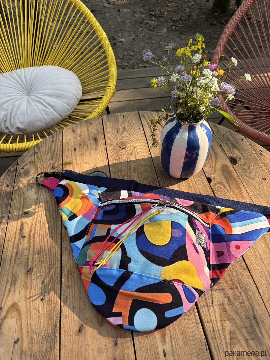 Wykonana z weluru tapicerskiego o pięknym, kolorowym abstrakcyjunym wzorze zewnątrz i jednokolorowej podszewki we wnętrzu.