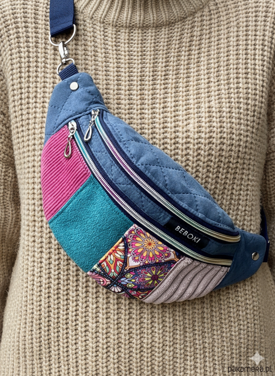 Kolorowa, energetyczna i absolutnie wyjątkowa – ta nerka BEBOKI w wersji patchworkowej, w rozmiarze M, to połączenie funkcjonalności i artystycznego designu. Uszyta ręcznie z różnorodnych materiałów – od miękkiego sztruksu i tkaniny tapicerskiej po ekozamsz – zachwyca trwałością i charakterem.