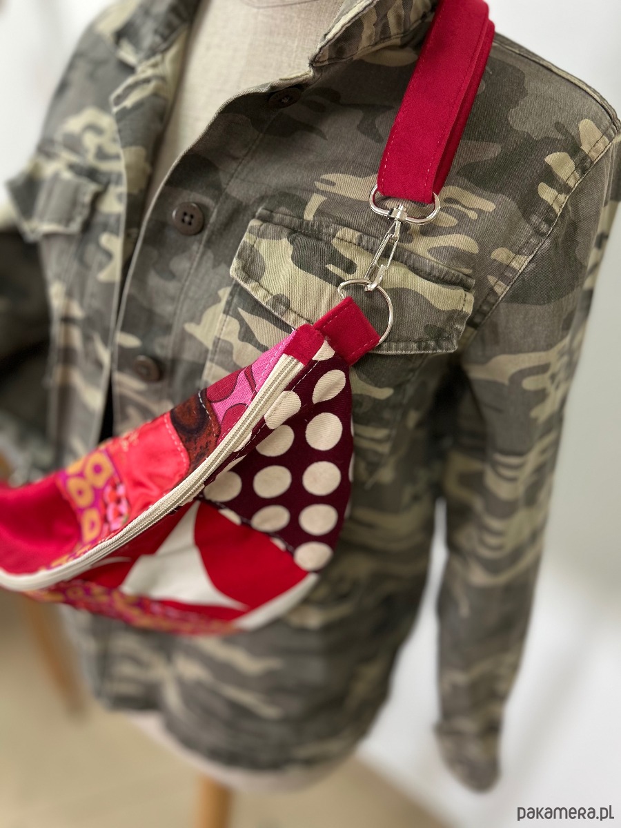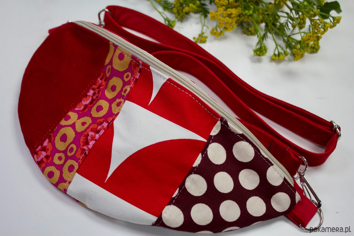 Nerka jest usztywniona materiałem poliestrowym o dość dużej gramaturze, dzięki czemu jest stabilna i solidnie uszyta. Wnętrze wykończone bawełnianą podszewką, z jedną kieszonką zapinaną na suwak. Nerka posiada welurowy, regulowany pasek z karabińczykami o długości 70-110 cm. Sama nerka mierzona z uszami ma 42xx17 cm, wierzchnia klapka ma 11 cm.