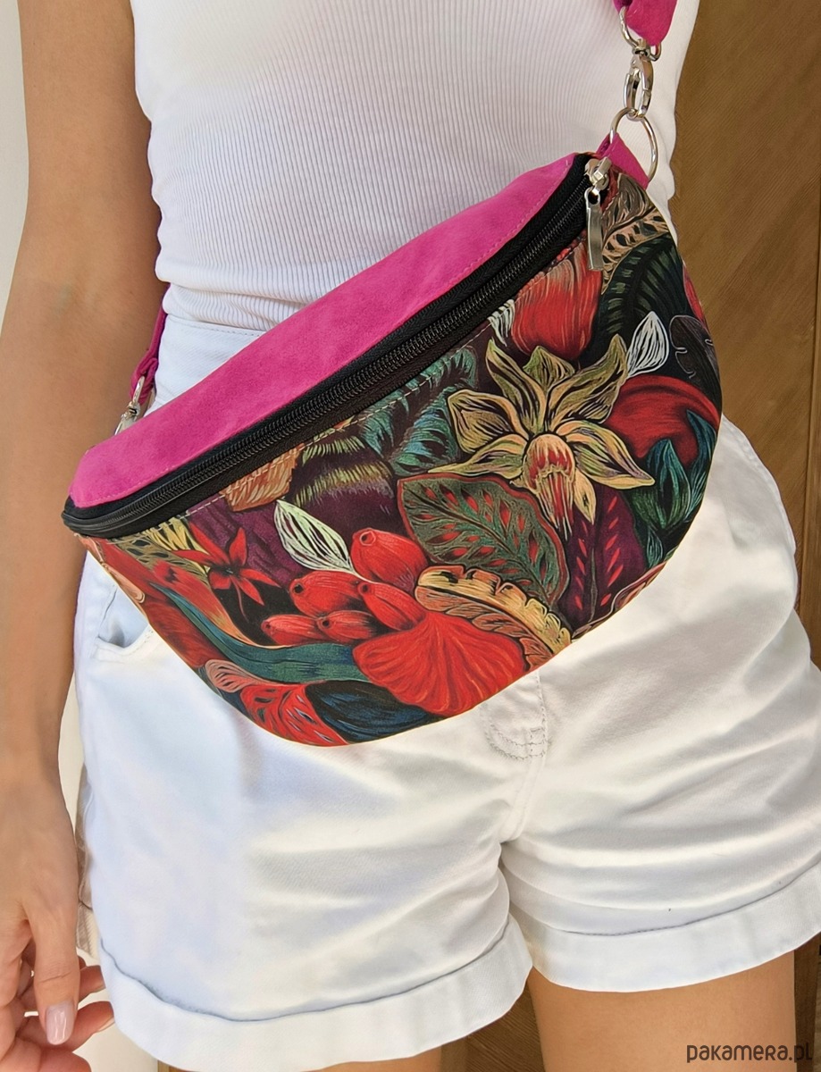 Nerka, saszetka do noszenia na ramię z regulowanym paskiem, zapinana na suwak, w środku mała kieszonka na suwak.