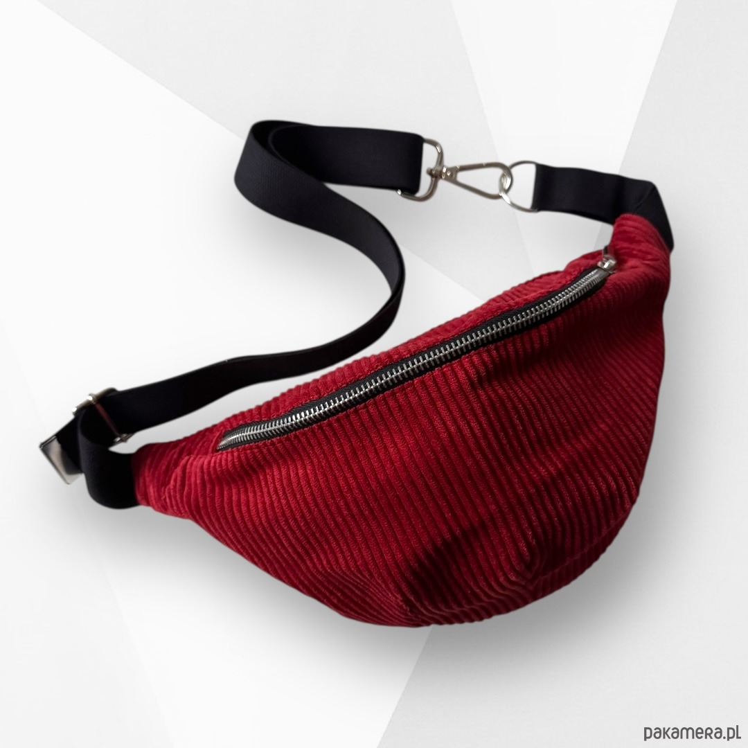 Nerka saszetka z kieszonką sztruksowa czerwona ceglasta