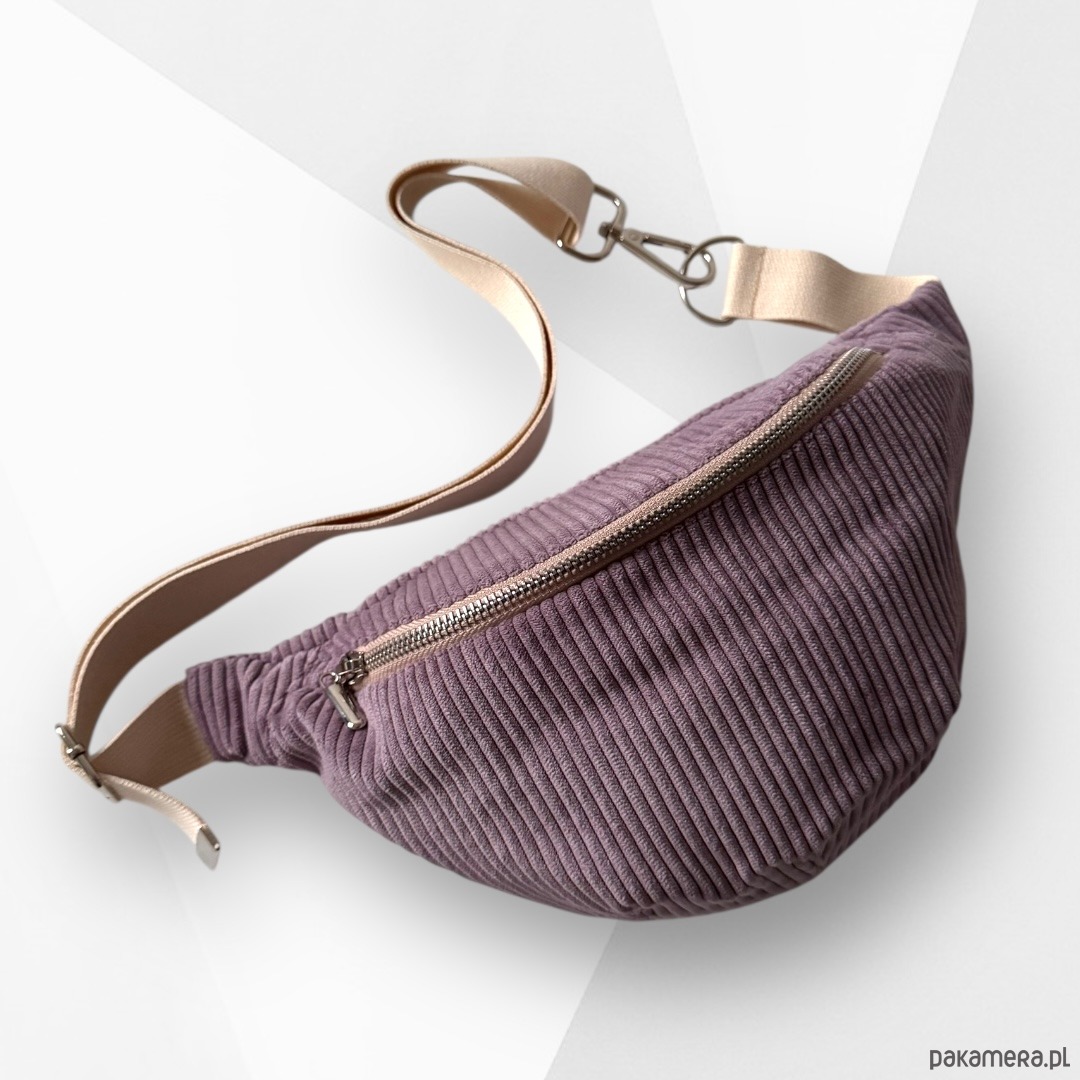Nerka saszetka z kieszonką sztruksowa fioletowa