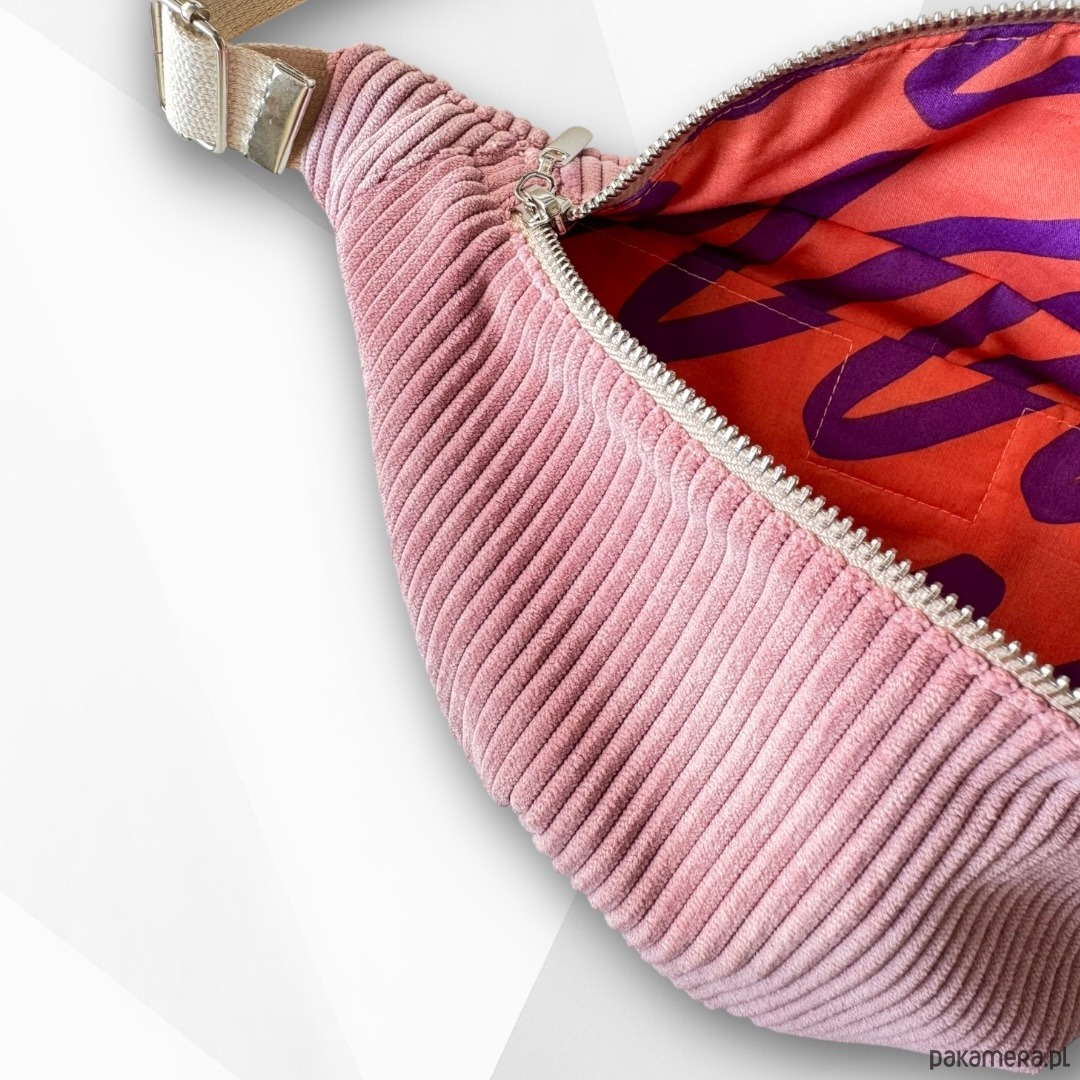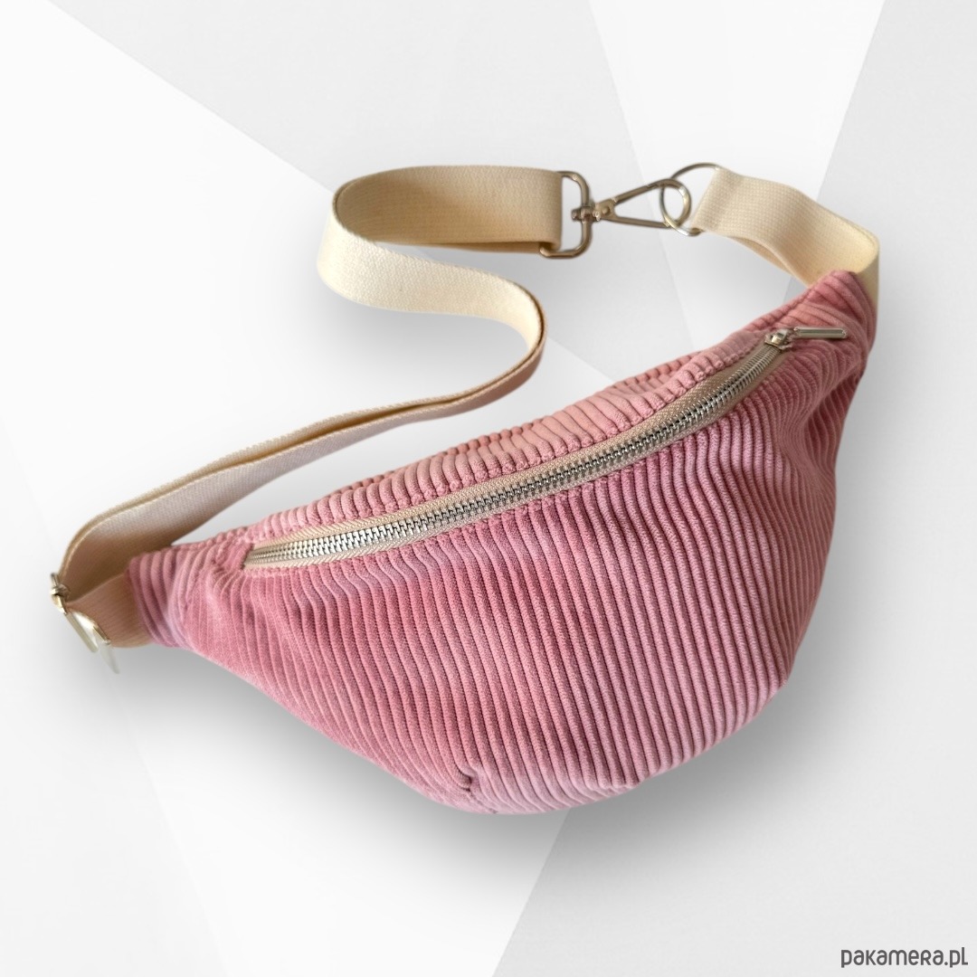 Nerka saszetka z kieszonką sztruksowa różowa