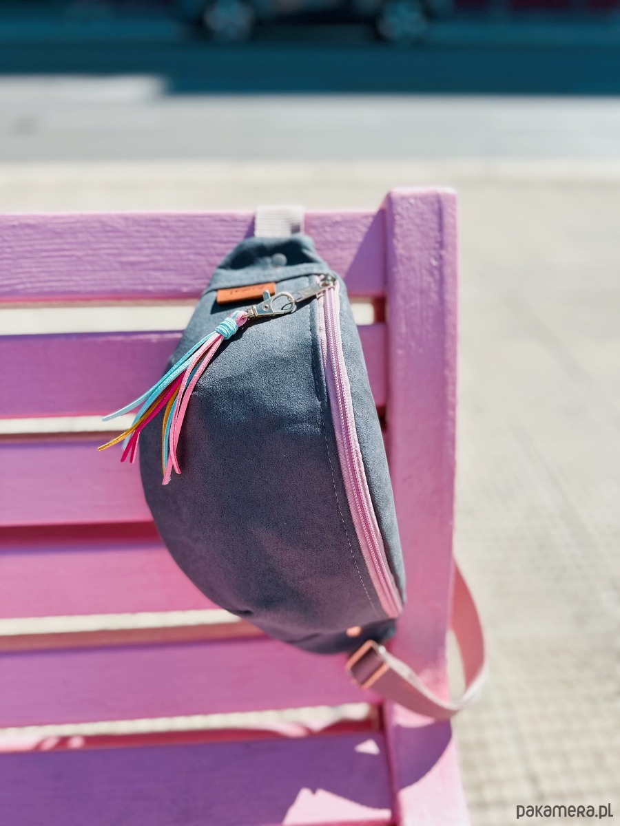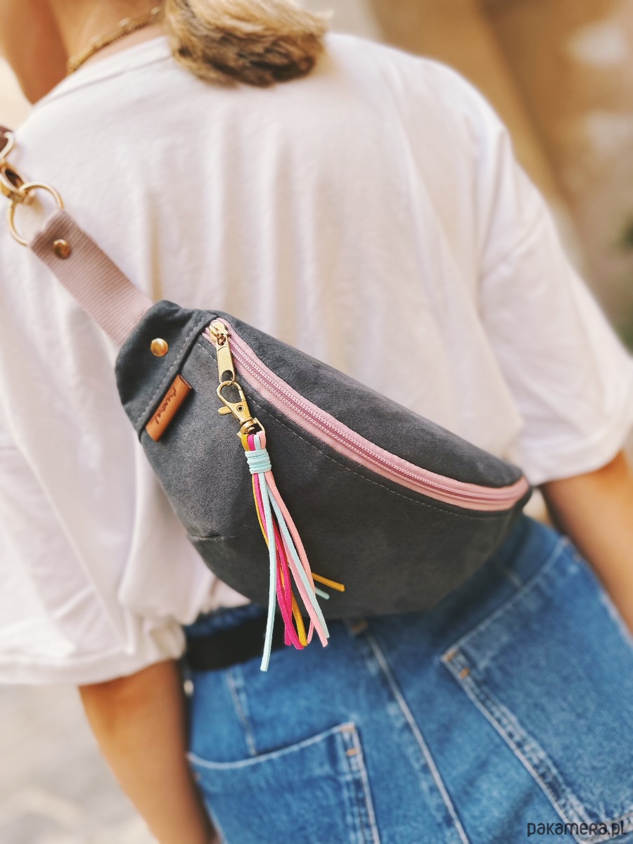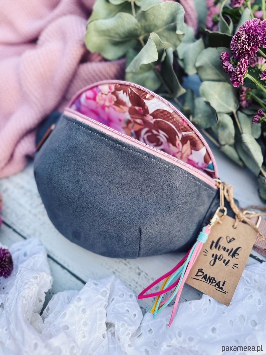 Szara nerka to zawsze dobry pomysł, zwłaszcza do bardziej wzorzystych ubrań. Nerka Silvia z szarego eko zamszu jest połączona z zamkiem w kolorze brudnego różu oraz ma w zestawie zamszowy brelok w pastelowych odcieniach. Takie połączenie jest zatem jednocześnie stonowane i energetyczne. Nerka kwiatową podszewkę i złote metalowe zapięcia.