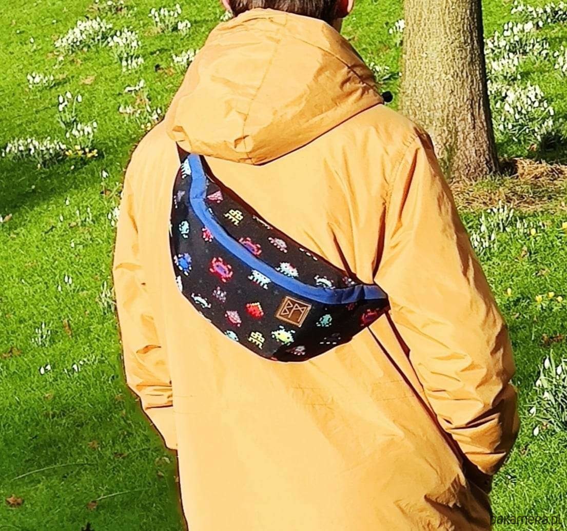 Czarna, bardzo duża nerka wykonana z solidnego wodoodpornego materiału i eko skóry. Poza obszerną komorą główną posiada wewnętrzną kieszeń zamykaną na suwak. Wymiary; szerokość 40cm, wysokość 20cm, głębokość 10cm, obwód pasa regulowany od 92cm do 135cm