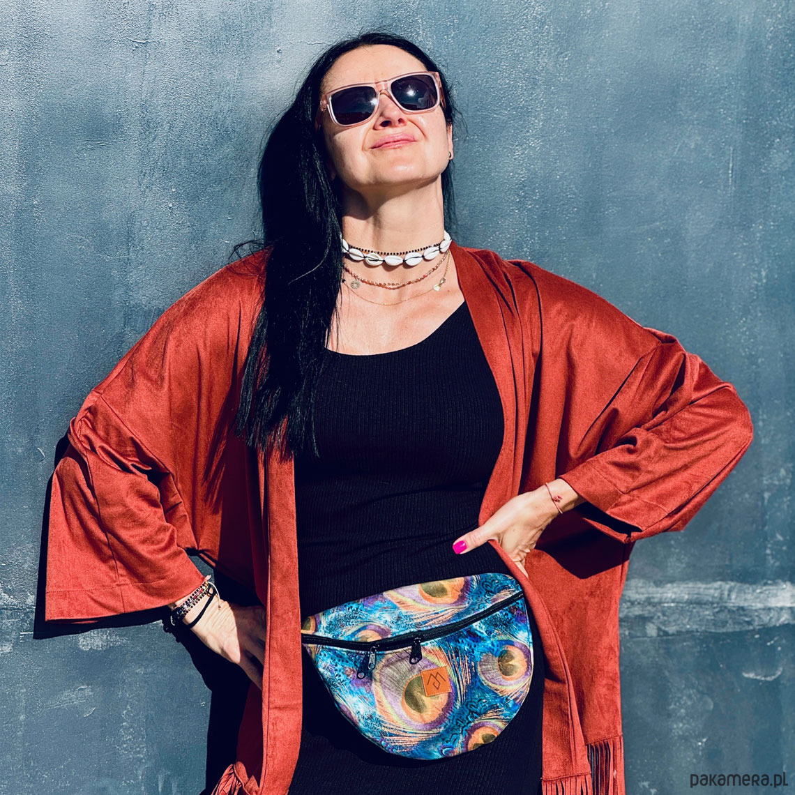 Pojemna i wygodna nerka wykonana z jeansu powlekanego welurem.