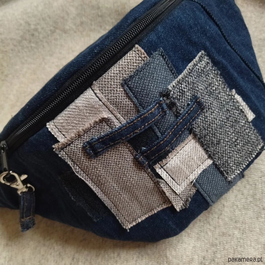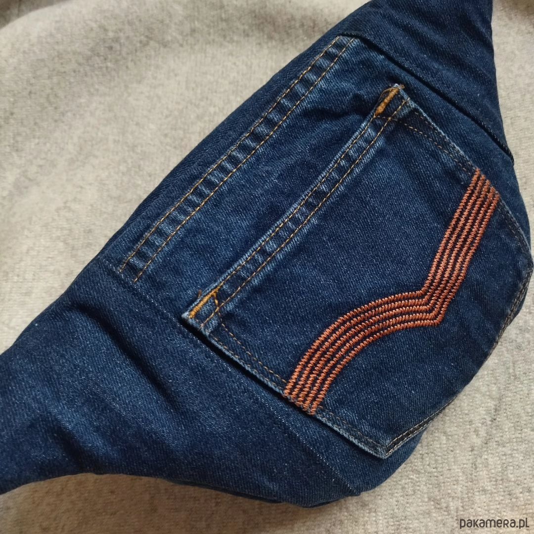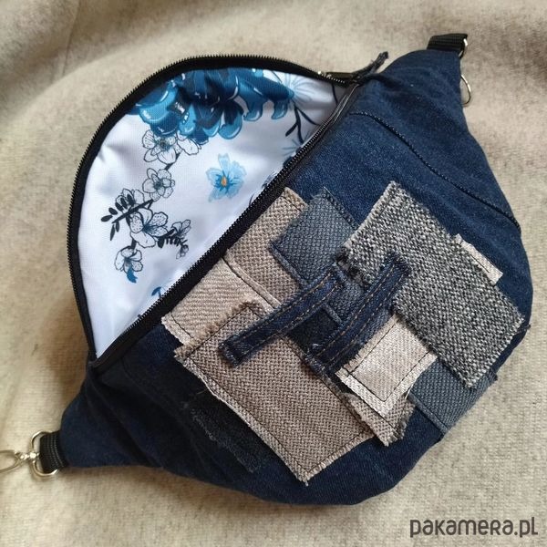 Upcyclingowa nerka wykonana z jeansu, tkanin obiciowych oraz wodoodpornej podszewki. Całość jest usztywniana dzięki czemu zachowuje swój kształt. W środku nerki znajduje się kieszeń zapinana na zamek. Wymiary: szerokość - ok. 37 cm, wysokość - ok. 19 cm, głębokość klapki - ok. 10 cm. W zestawie regulowany pasek o długości max ok 120 cm. Serdecznie zapraszam