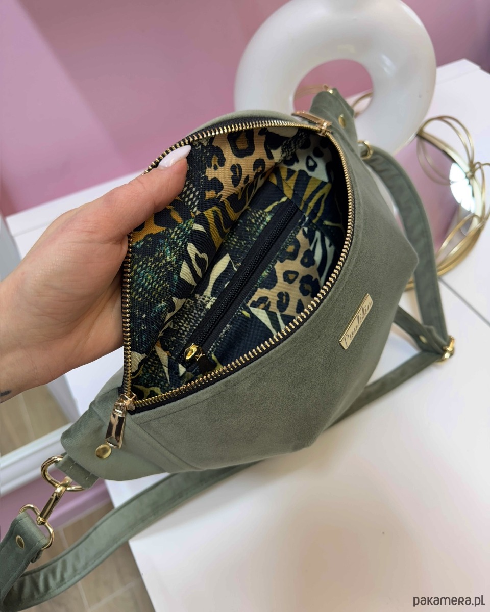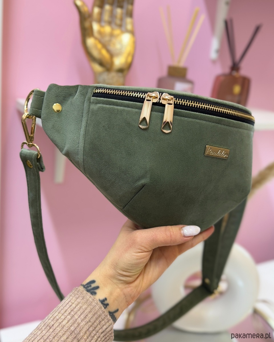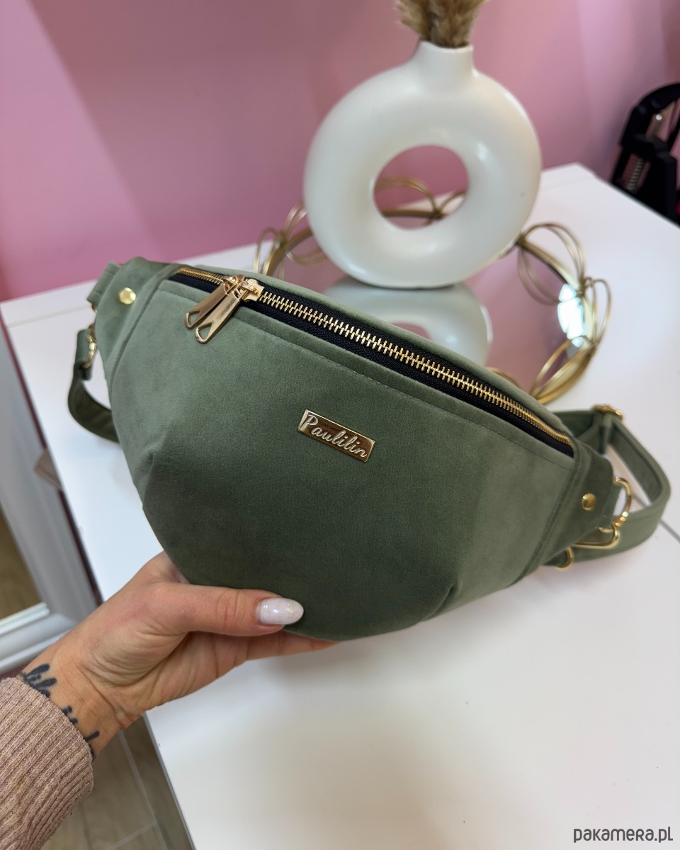 Nerka wykonana z wysokiej jakości weluru tapicerskiego, który jest miękki w dotyku a jednocześnie wytrzymały. Materiał pięknie się mieni i wygląda bardzo elegancko. Nerka, która będzie idealnym towarzyszem na wszelkie spacery, wyjścia, imprezy. Wszystko masz pod ręką. W środku nerka posiada kieszonkę zapinaną na zamek.