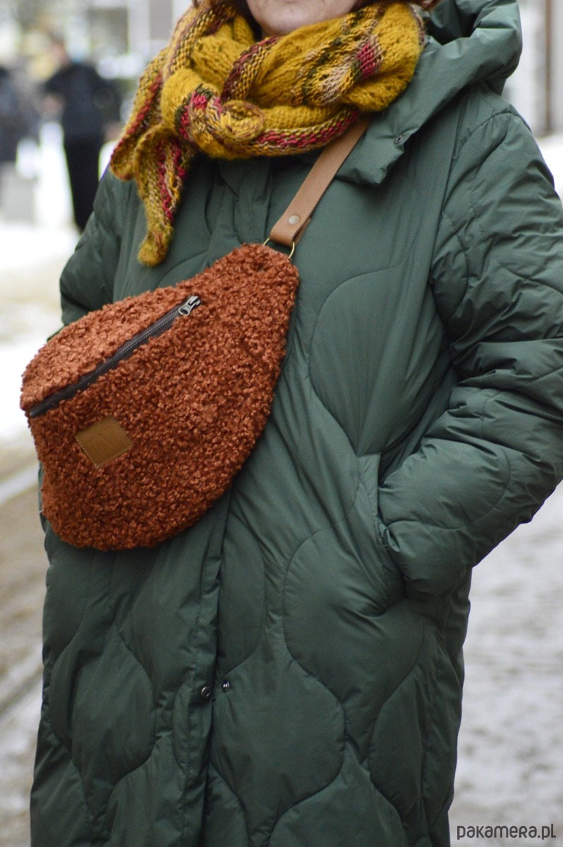 Całość została wzmocniona wodoodpornym materiałem, dzięki któremu nerka jest bardziej wytrzymała. Wewnątrz znajduje się mała kieszonka na suwak, która się przyda na drogocenne drobiazgi.