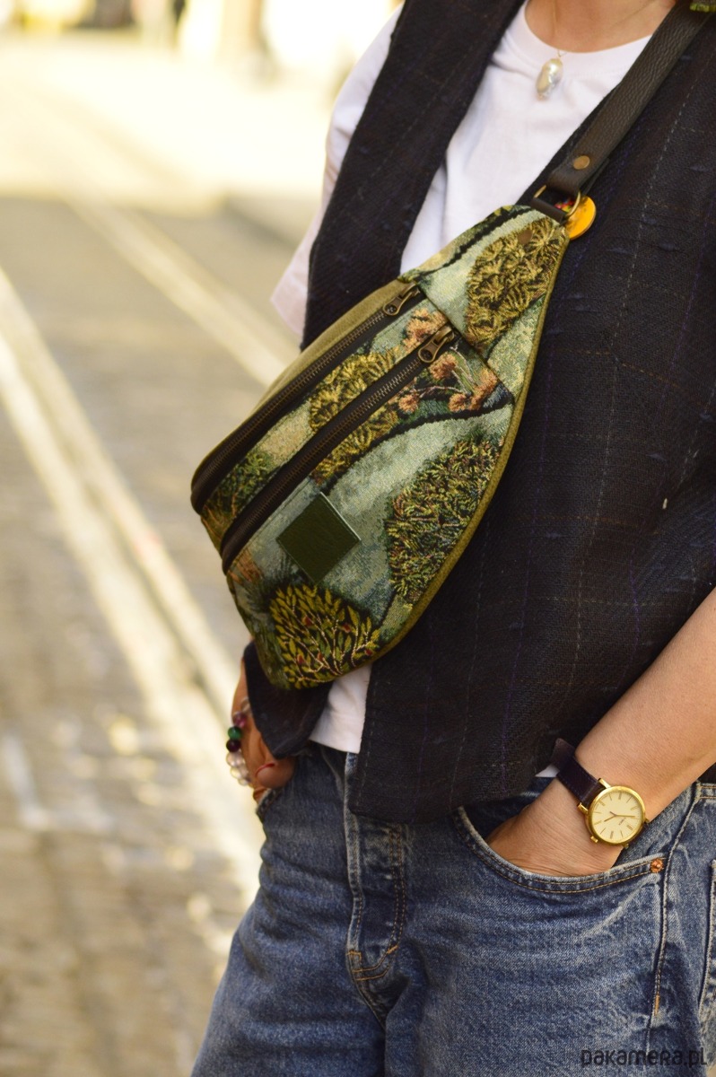 Nerka powstała z tkaniny gobelinowej z wzorem drzewek oraz skóry naturalnej . Nerka jest bardzo duża, więc nadaje się do noszenia tylko w formie torebki. Z przodu ma dodatkową kieszonkę.